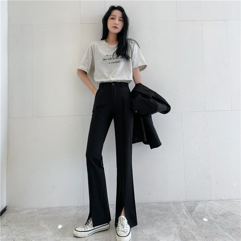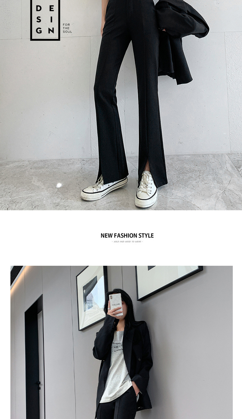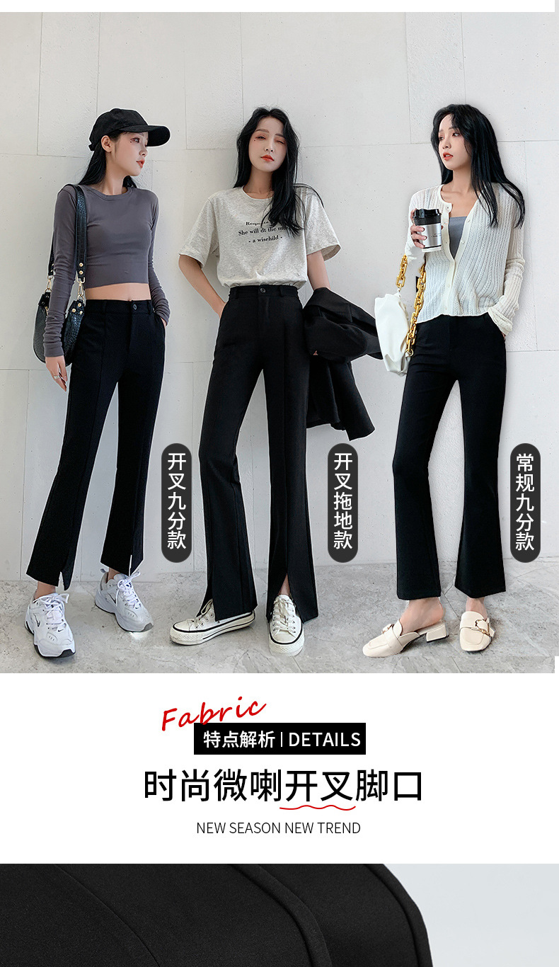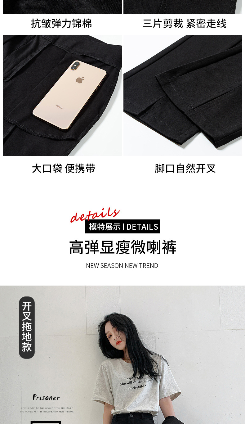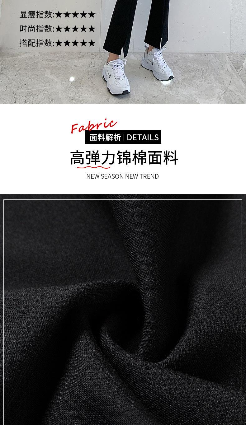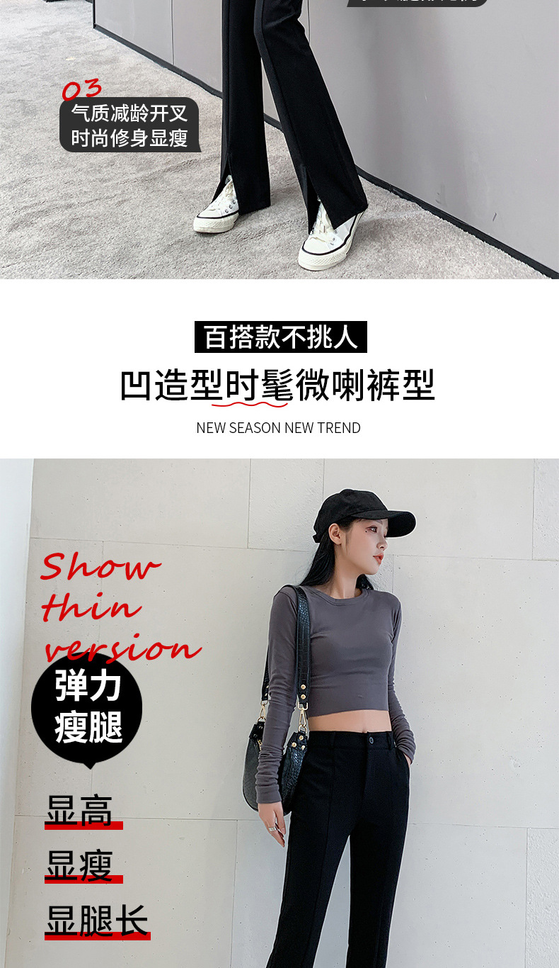 秋冬新款垂感锦棉休闲裤大码显瘦高腰黑色小个子拖地开叉喇叭裤女