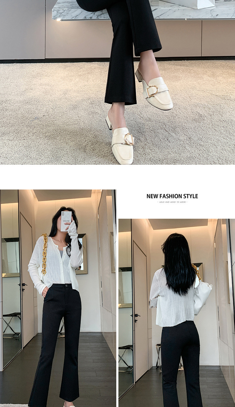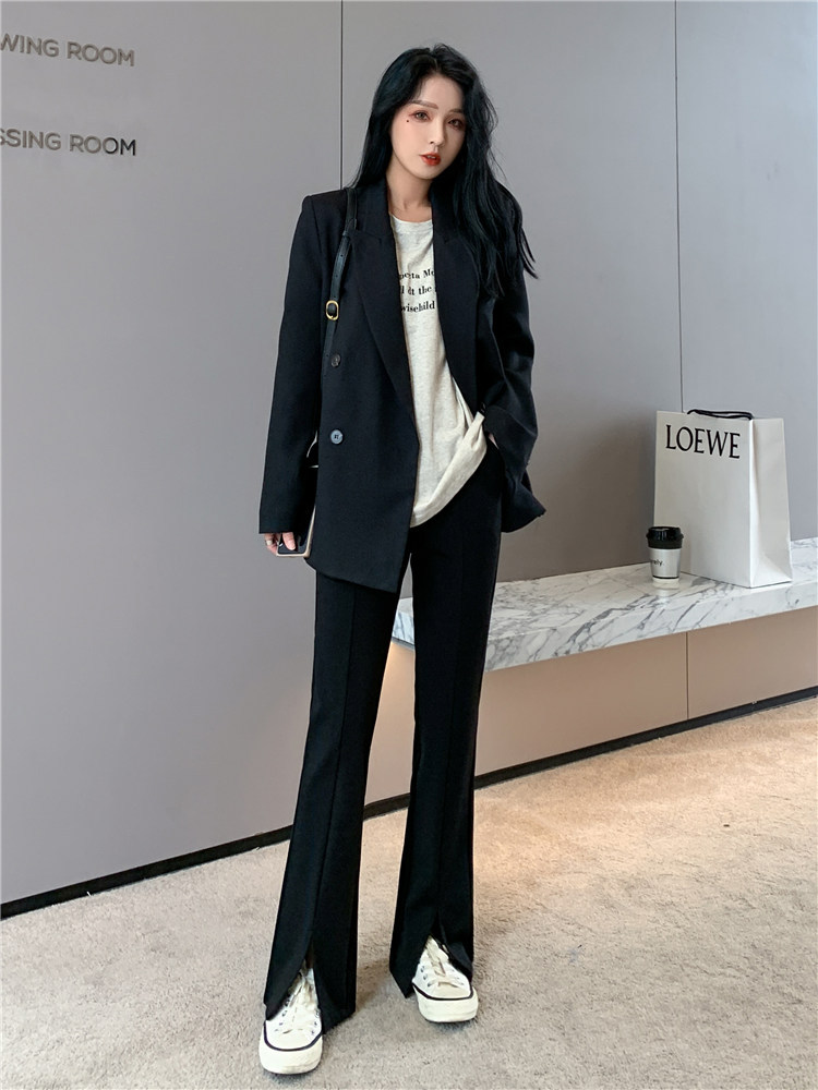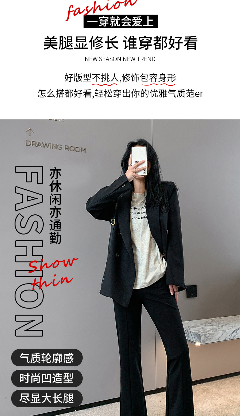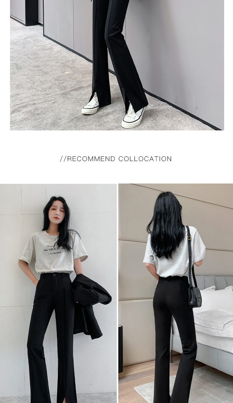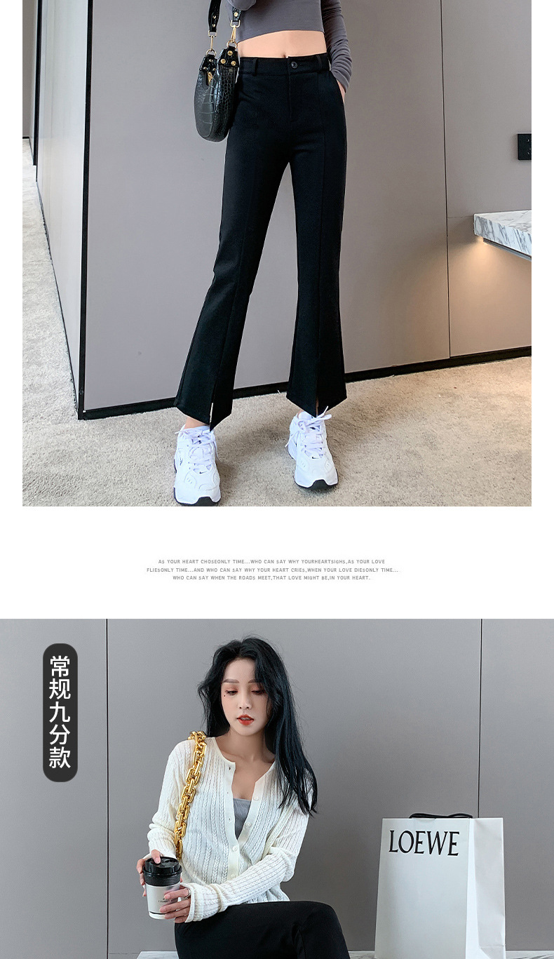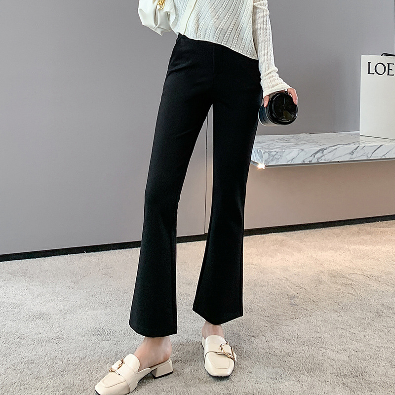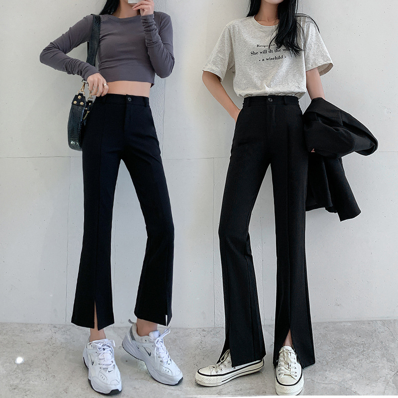 秋冬新款垂感锦棉休闲裤大码显瘦高腰黑色小个子拖地开叉喇叭裤女