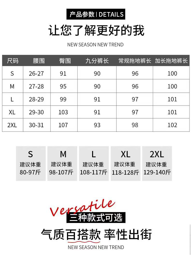 颜色 常规九分款(微喇),九分开叉款,常规开叉款,特长加长开叉款