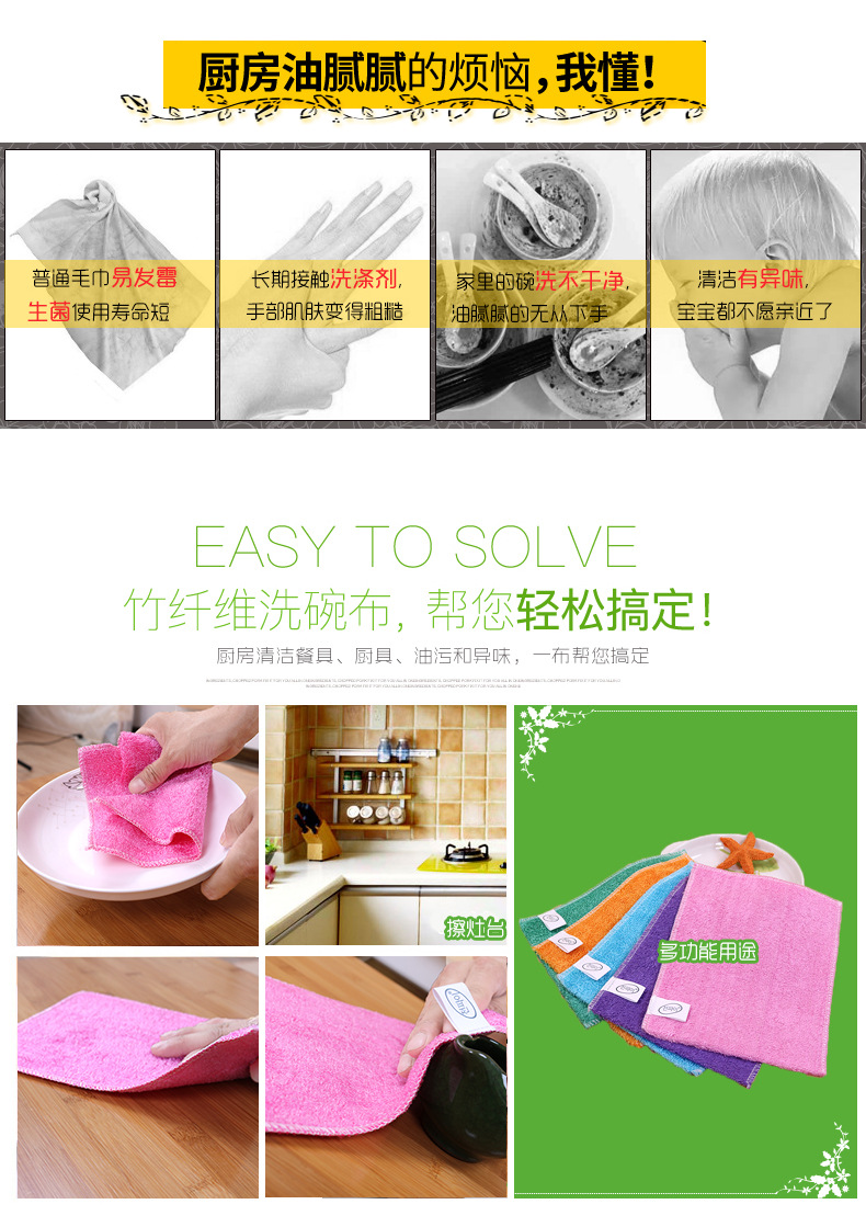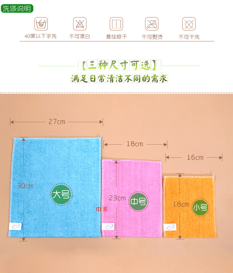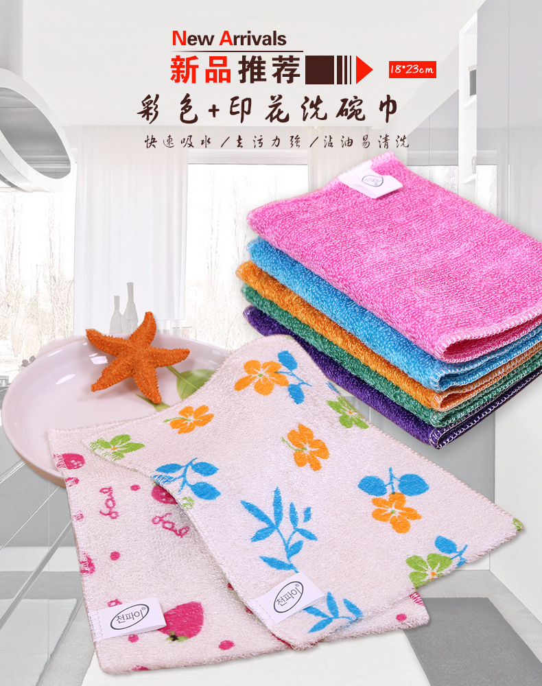 日用百货批发18*23竹纤维洗碗巾加厚吸油易清洗彩色百洁布