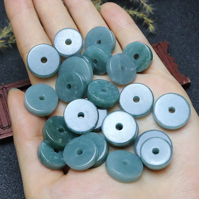 平安扣 A货翡翠小平安扣玉器蓝水危料DIY耳饰手链 玉石吊坠 配件