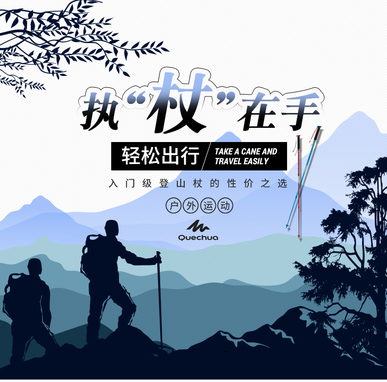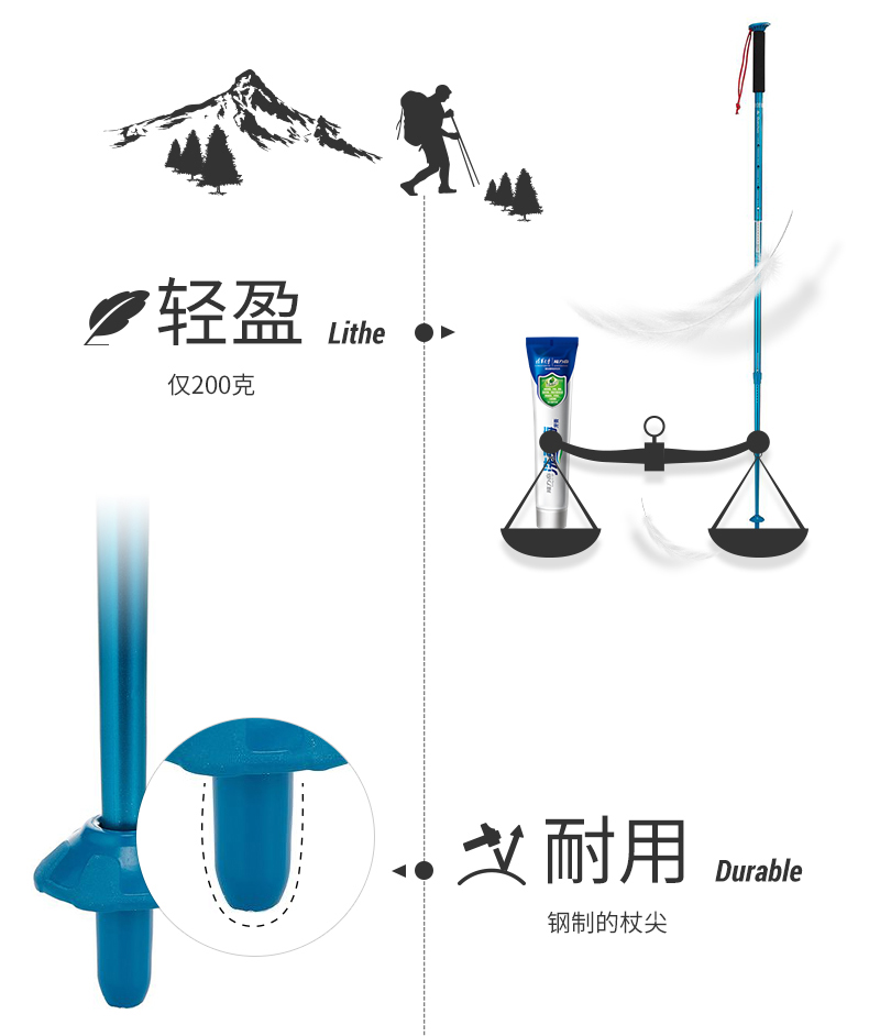 迪卡儂戶外登山可伸縮徒步多功能登山杖爬山輕便女手杖ODAP