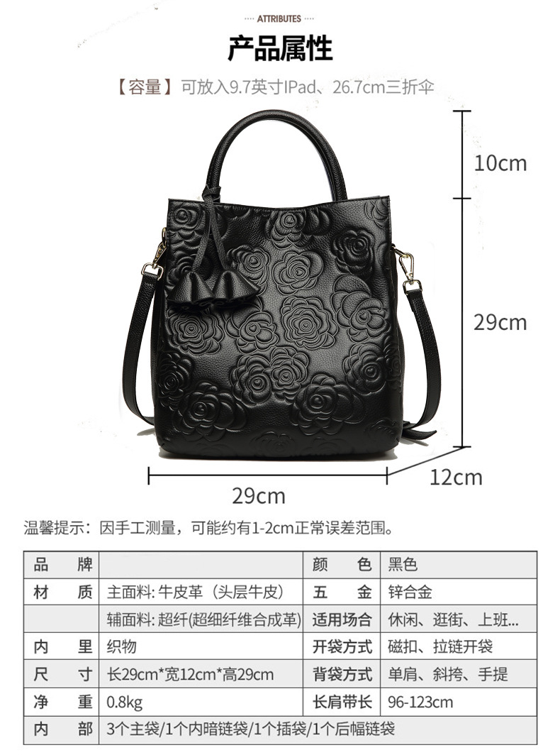 2022新款百搭手提包潮气质手拎包 女士头层牛皮真皮大容量单肩包超值价:¥135