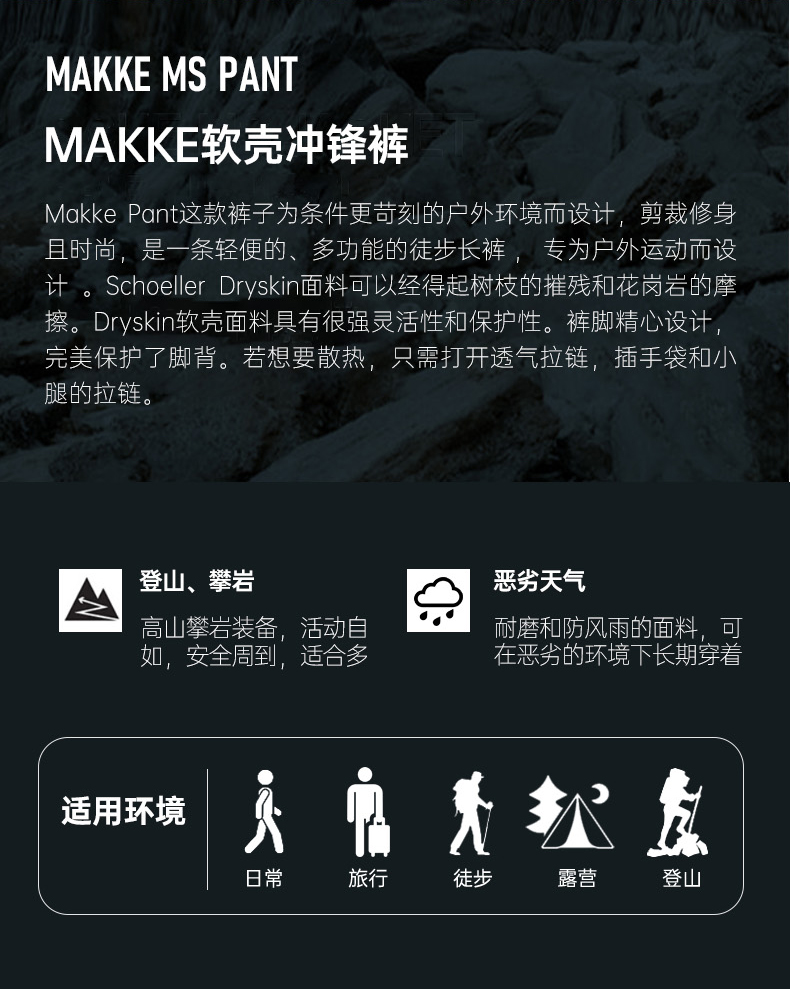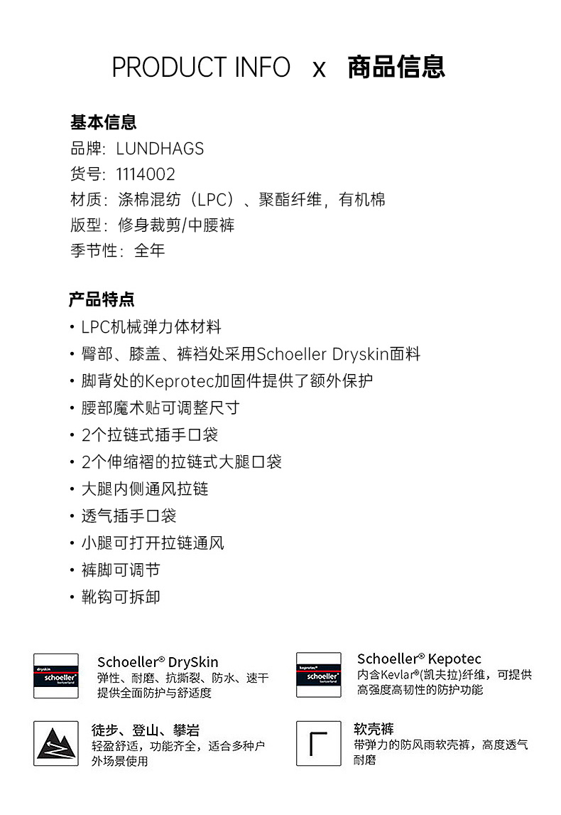 Lundhags隆哈MakkeMs Pant戶外軟殼衝鋒褲2023透氣防水登山褲男士