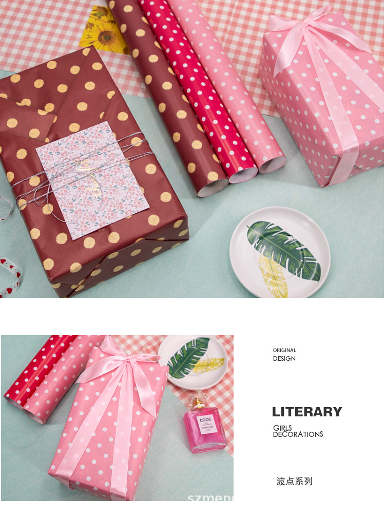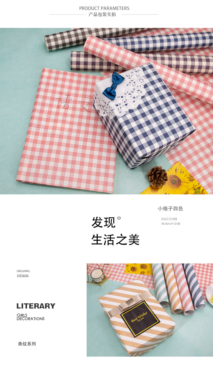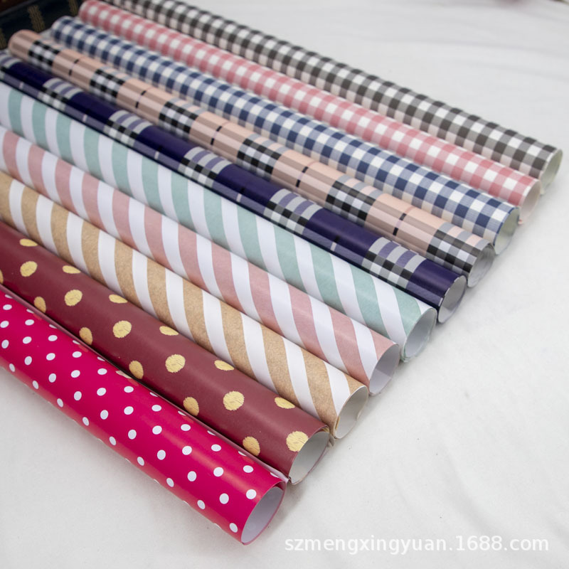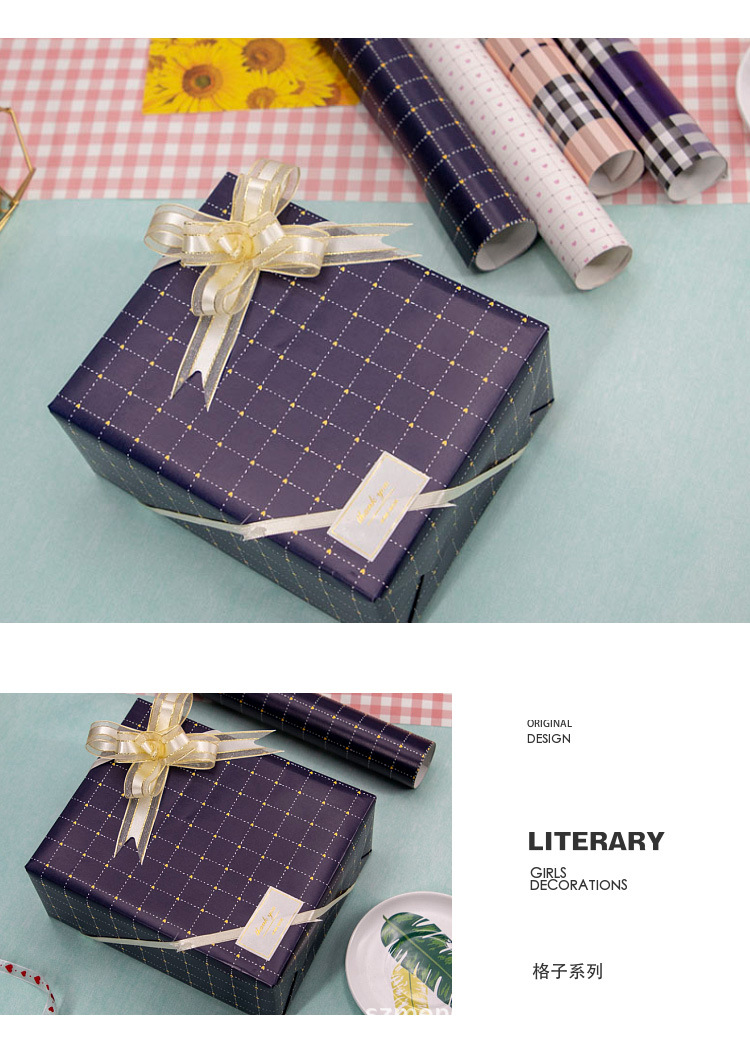 粉色蓝色格子条纹波点简约送男女朋友礼品礼物包装纸礼盒手工彩纸