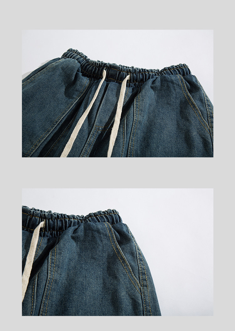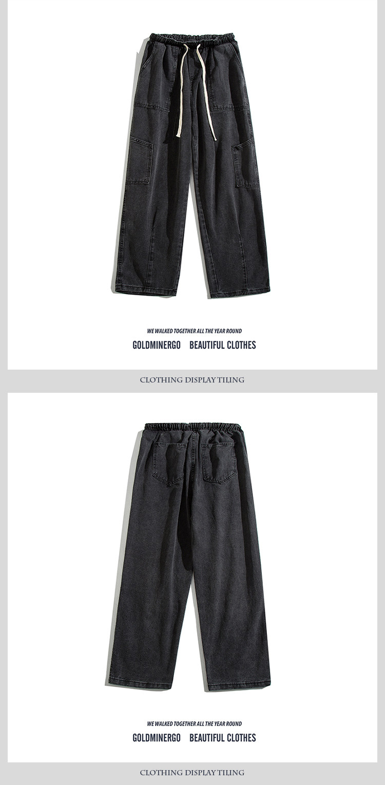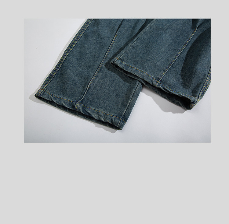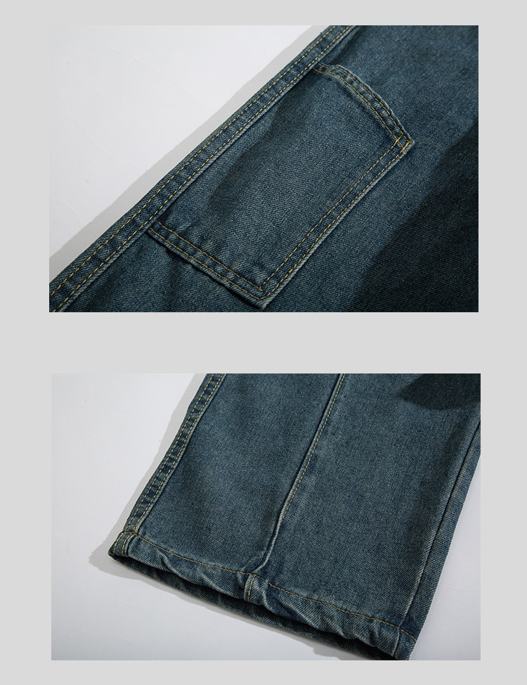 日系ins工裝牛仔褲男潮牌寬鬆痞帥直筒褲復古水洗多口袋闊腿長褲