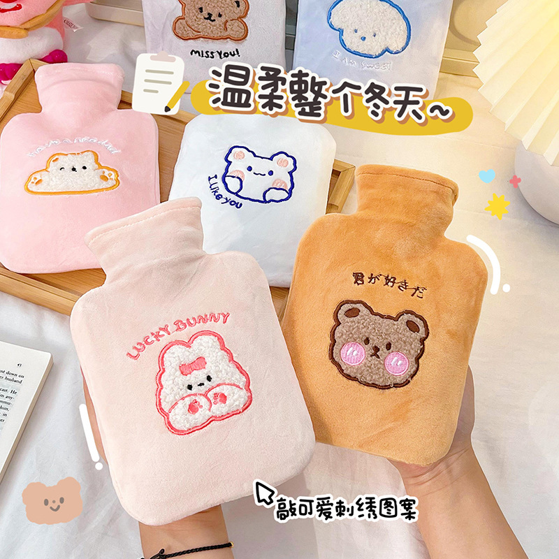 冬季卡通毛绒热水袋可爱注水防爆暖水袋便携可拆卸暖水宝暖宝宝