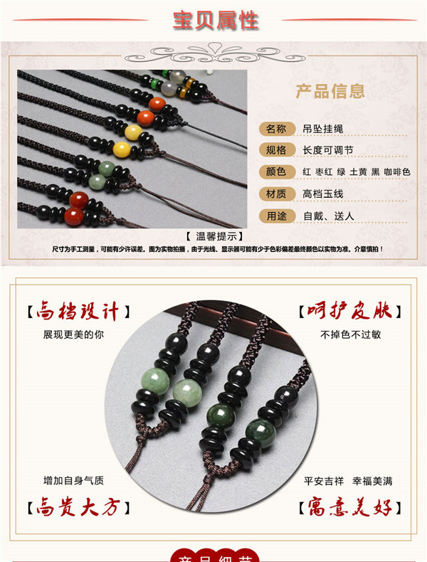 翡翠吊坠绳玛瑙项链绳和田玉吊坠挂绳饰品编织绳子可调节一件代发