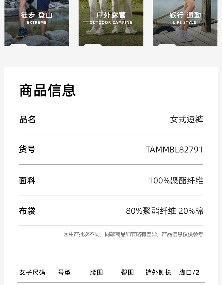 探路者徒步褲戶外運動透氣速乾彈力時尚休閒工作服女式短迷你裙褲