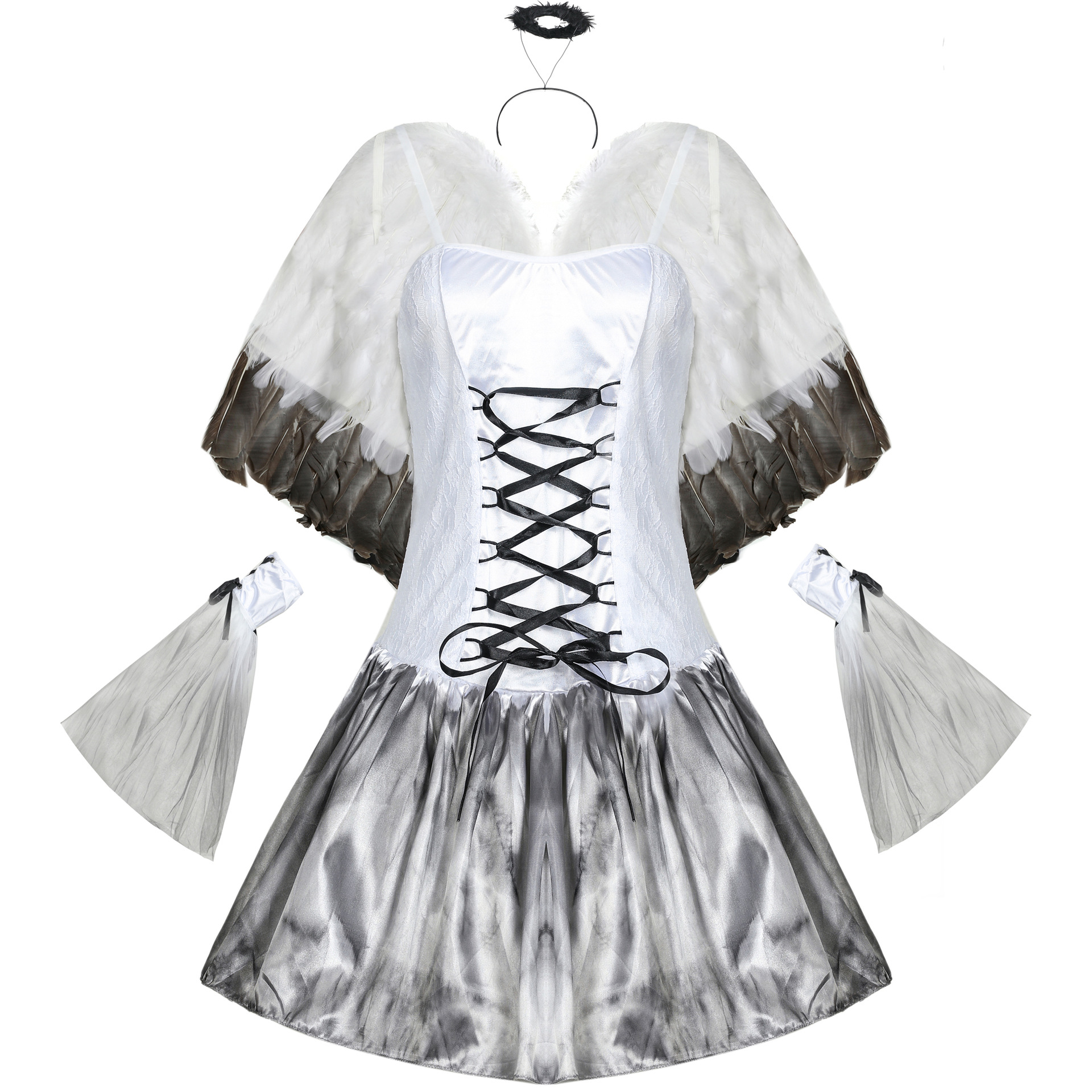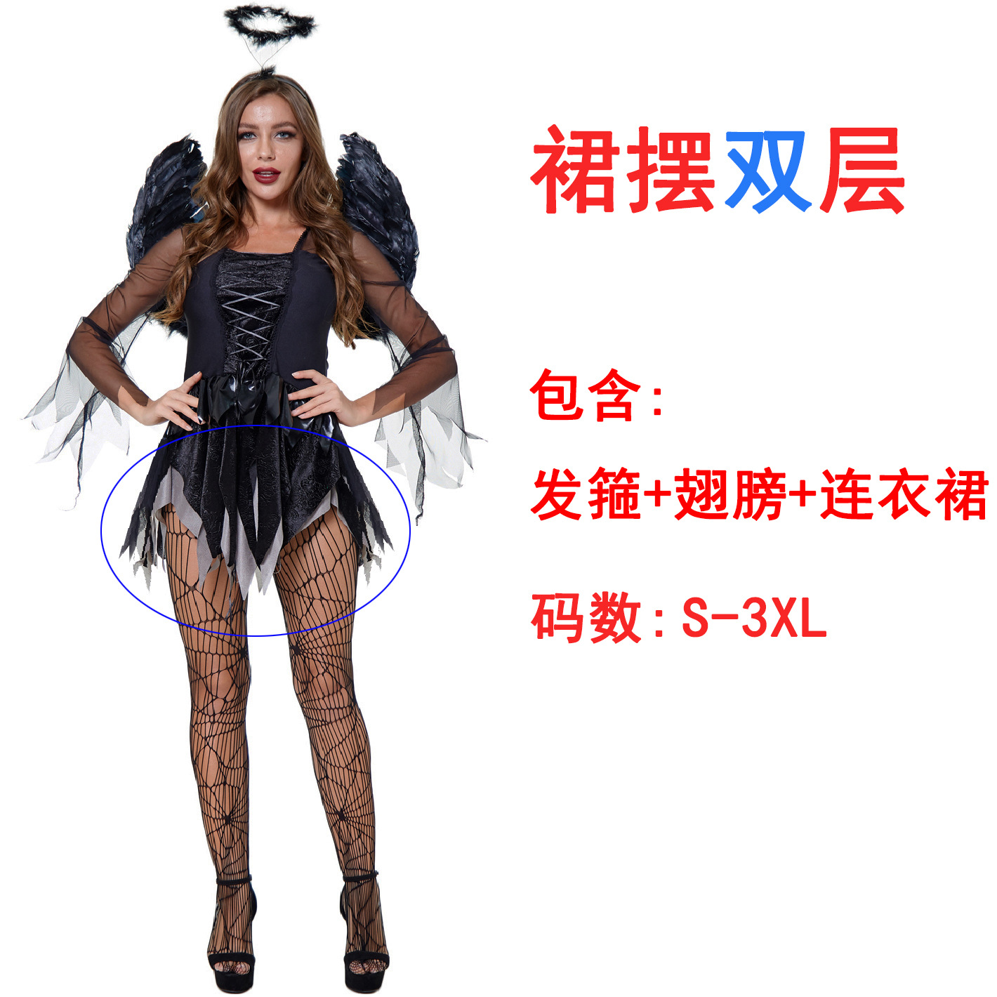 S-3XL丧尸黑暗天使制服 欧美女士万圣节服装扮演邪恶天使装鬼新娘
