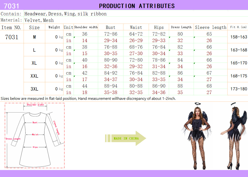 包含:头箍,翅膀,连衣裙,丝带,(袜子可选,袜子不分大小码)