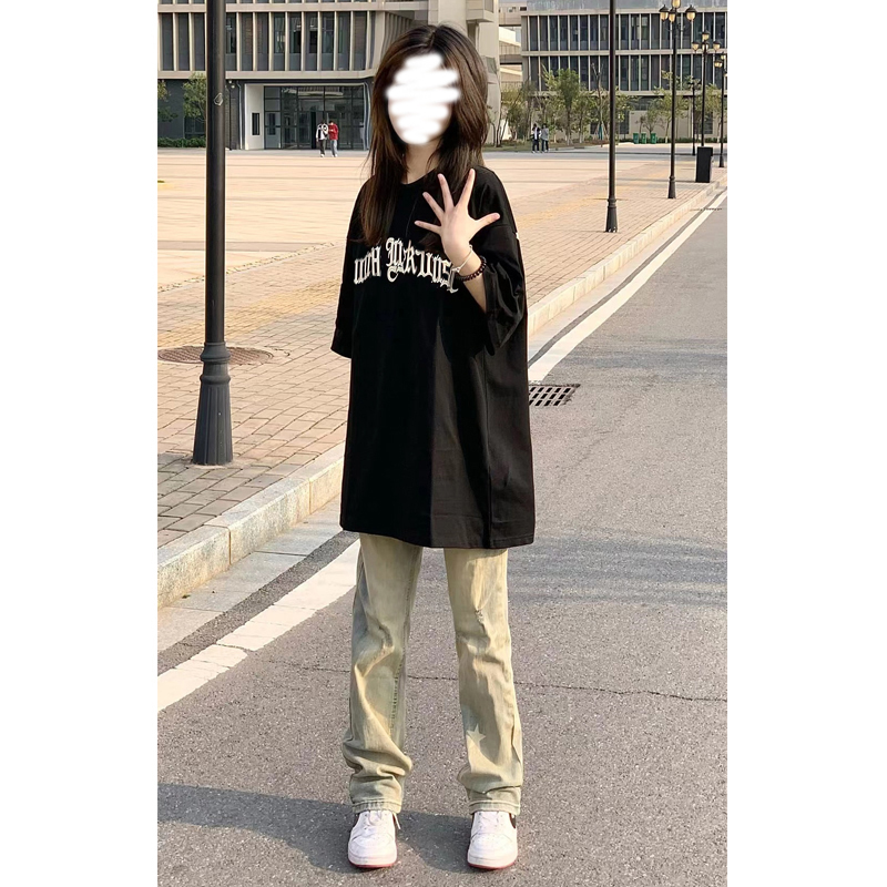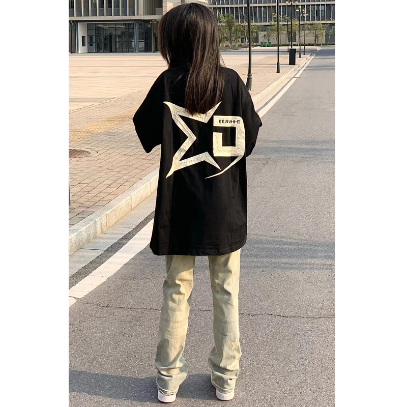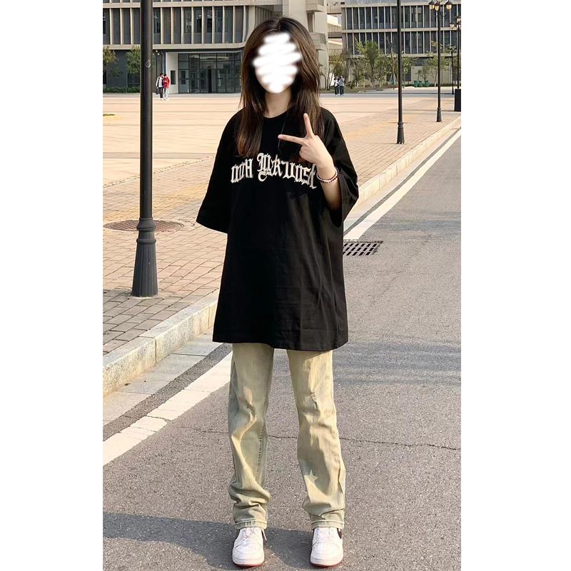 潮牌oversize正肩短袖t恤女夏季設計感小眾美式高街純棉情侶上衣