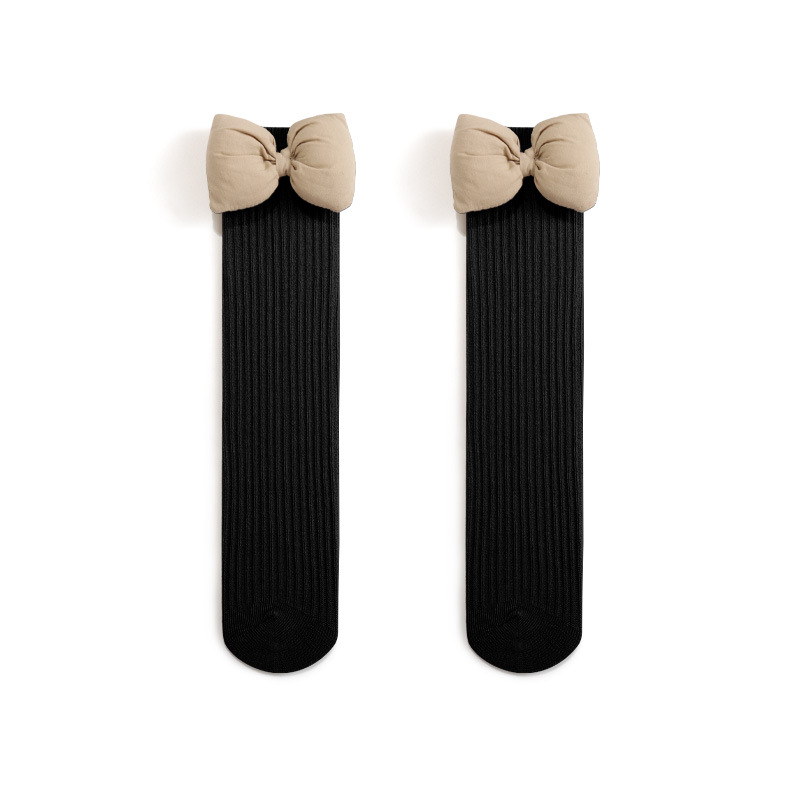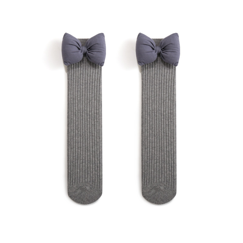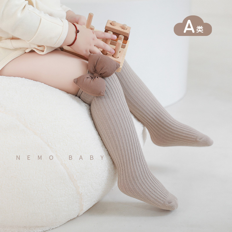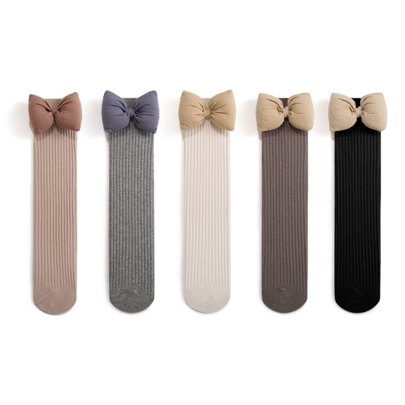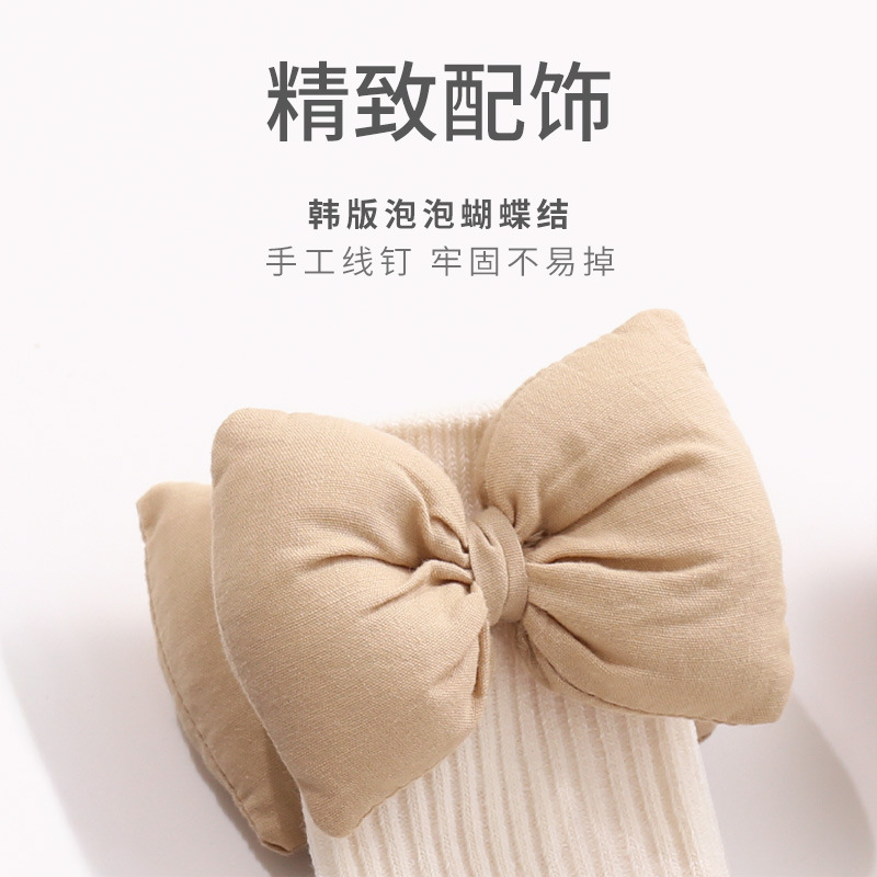 2023秋季新品女童袜子韩国公主大蝴蝶结女宝宝长筒双针纯色JK棉袜