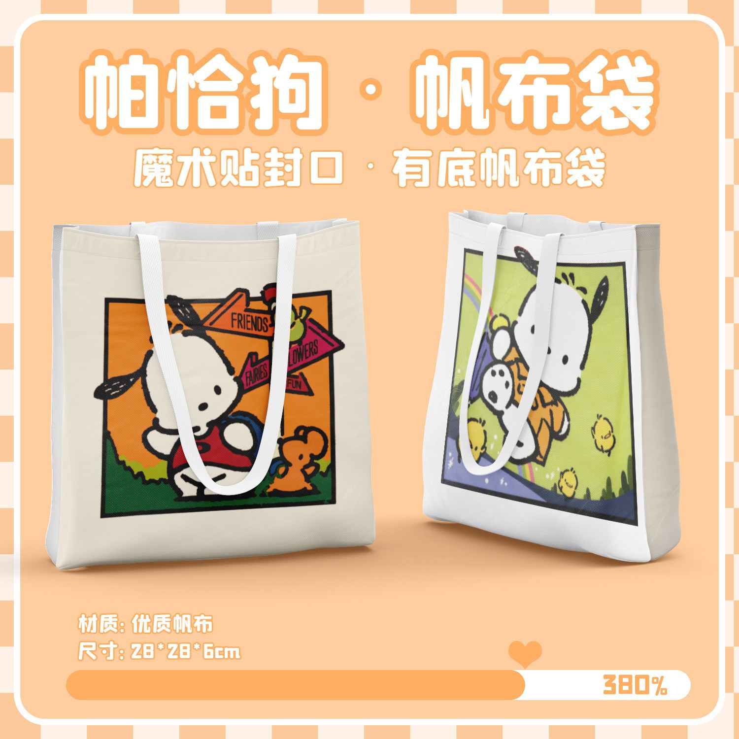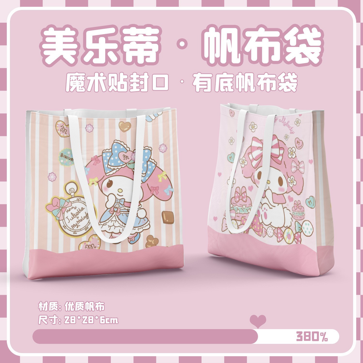 库洛米平底精致帆布包 尺寸28CM*28CM 动漫购物礼物袋时尚手提袋