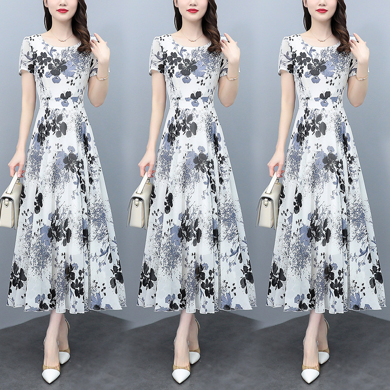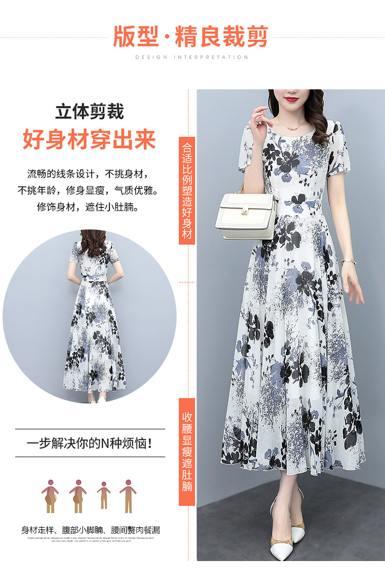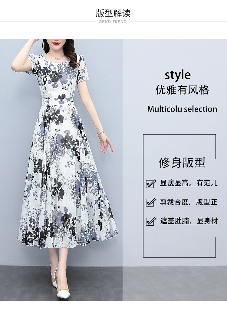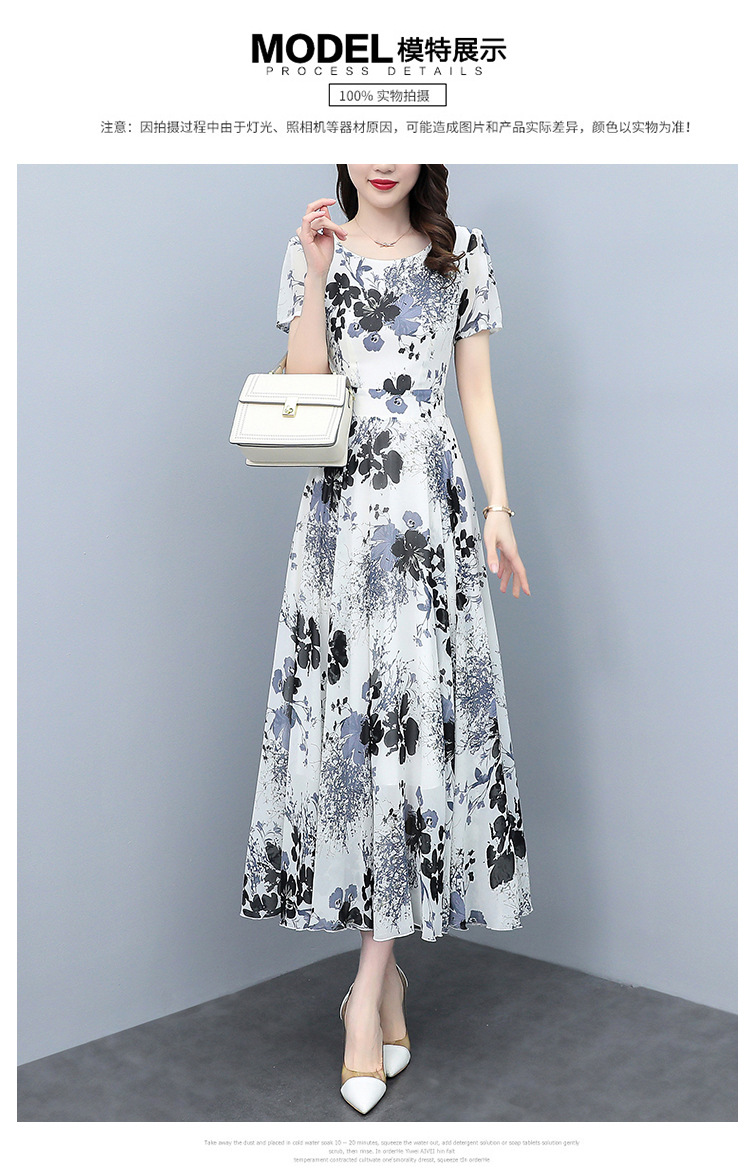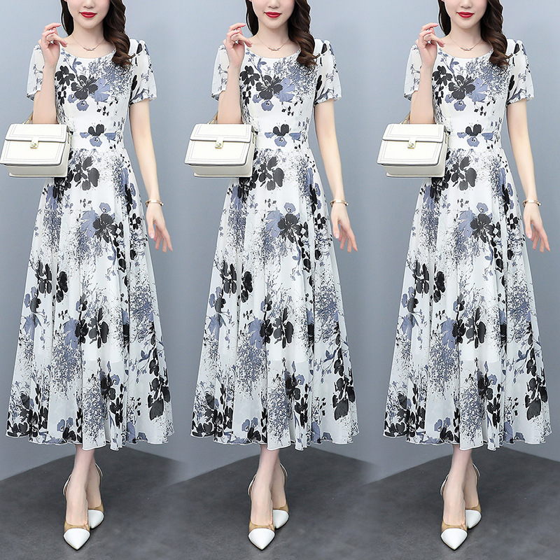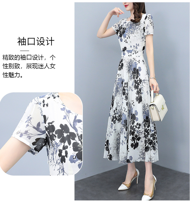 2023夏季新款白色雪纺碎花连衣裙收腰显瘦遮肚子长裙