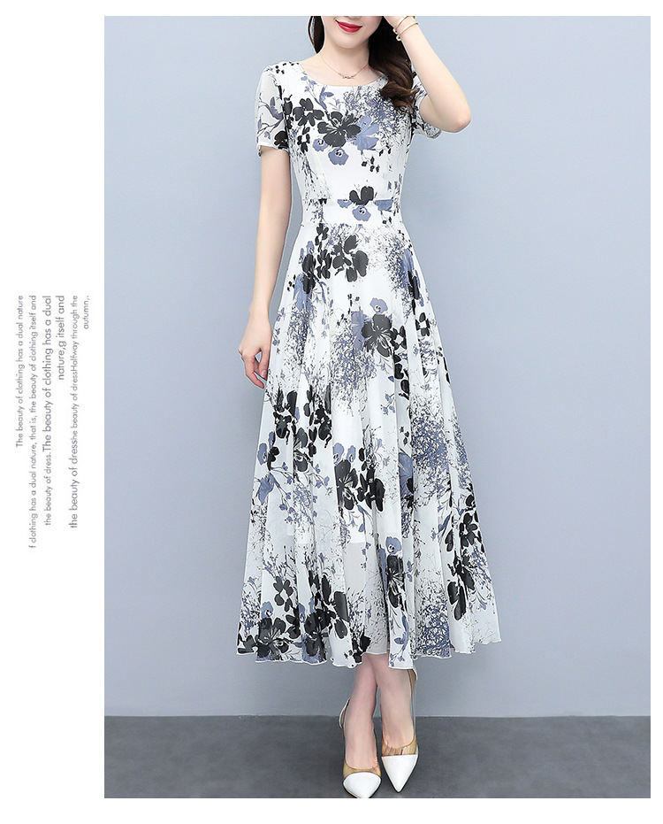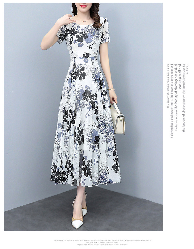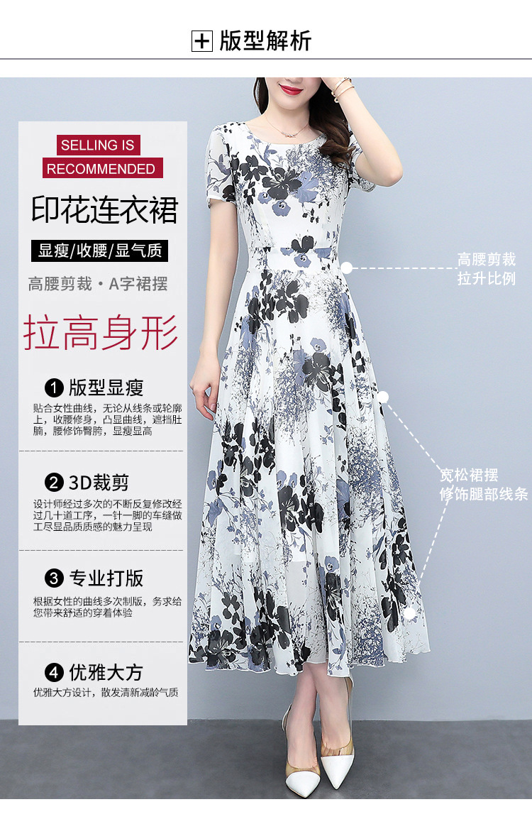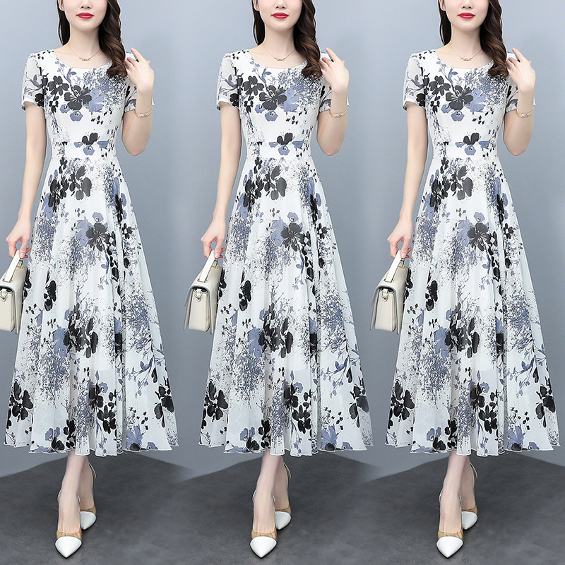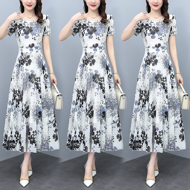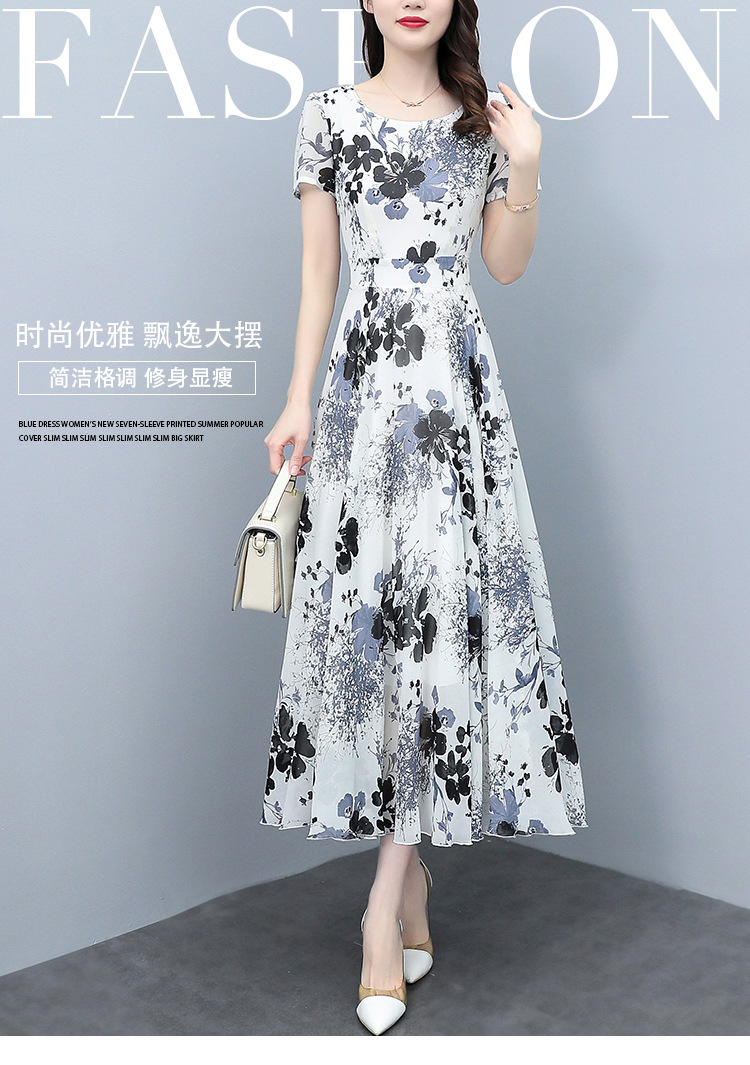 2023夏季新款白色雪纺碎花连衣裙收腰显瘦遮肚子长裙