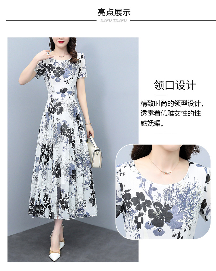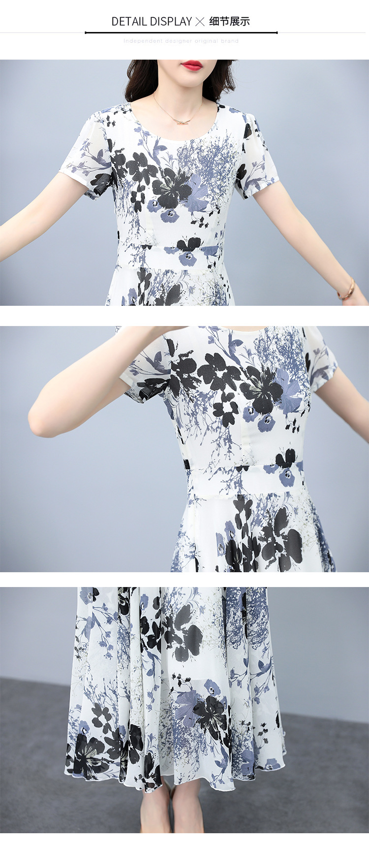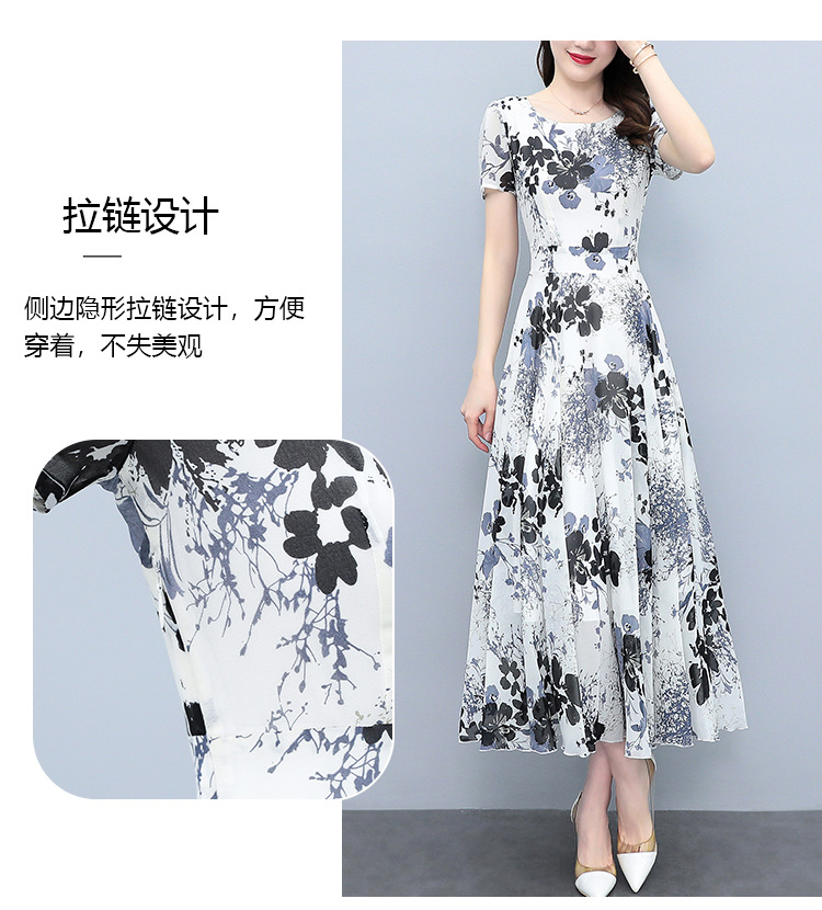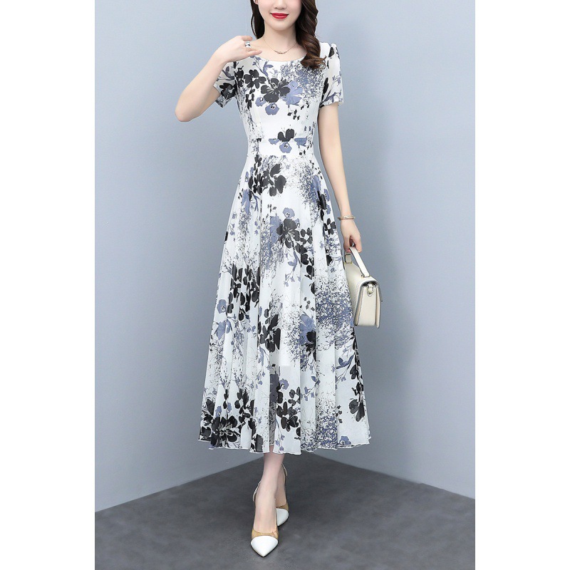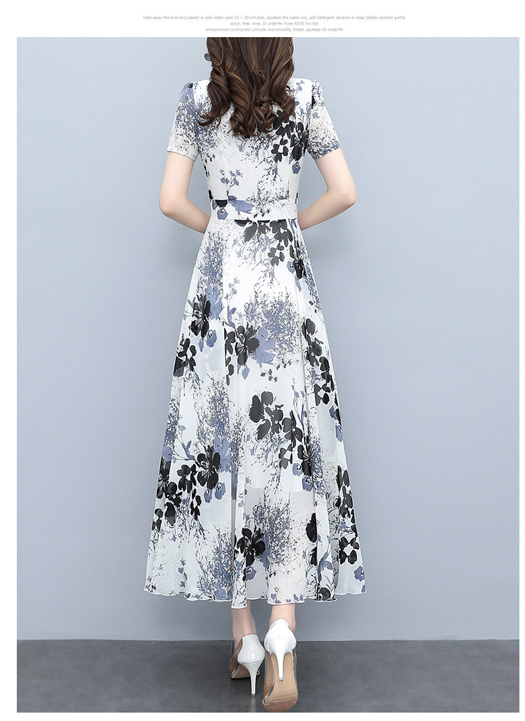 2023夏季新款白色雪纺碎花连衣裙收腰显瘦遮肚子长裙