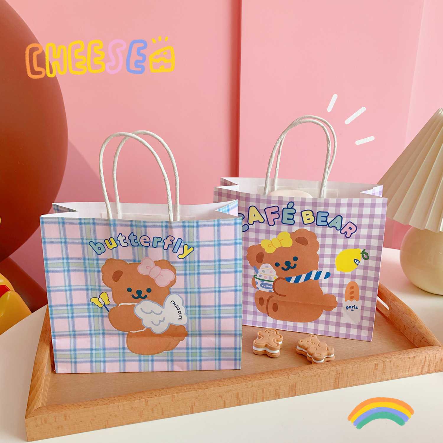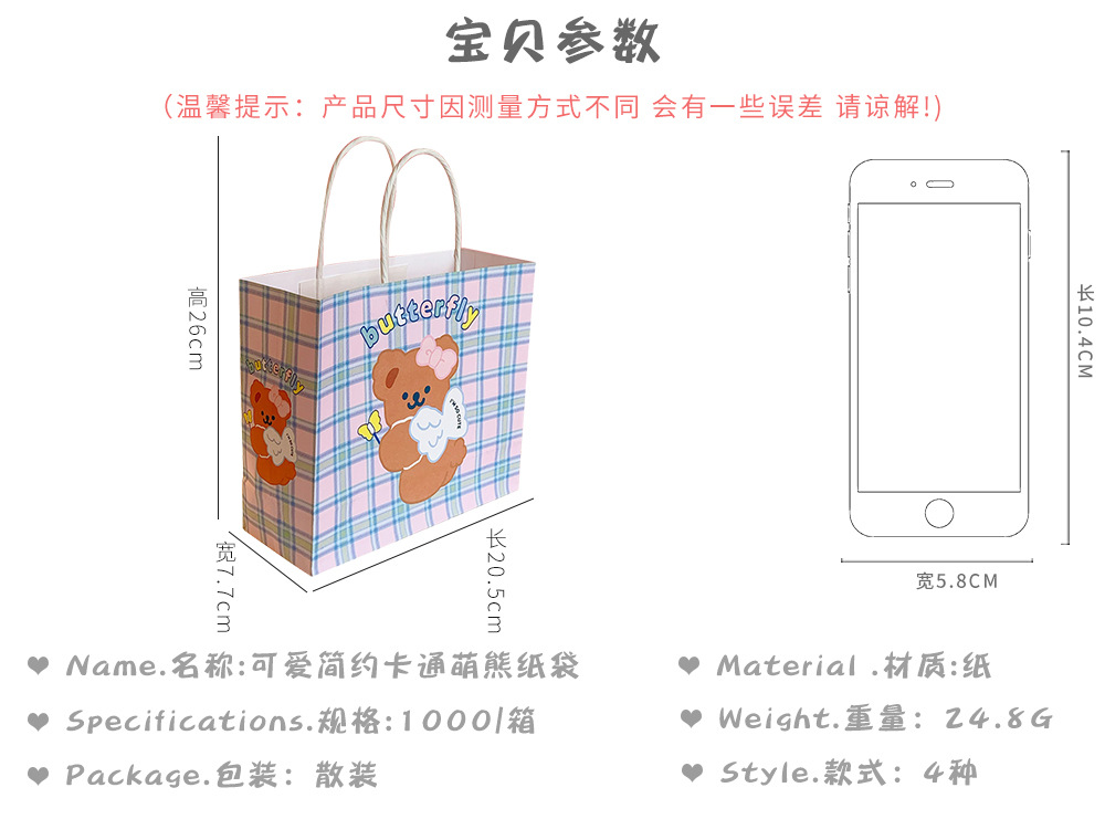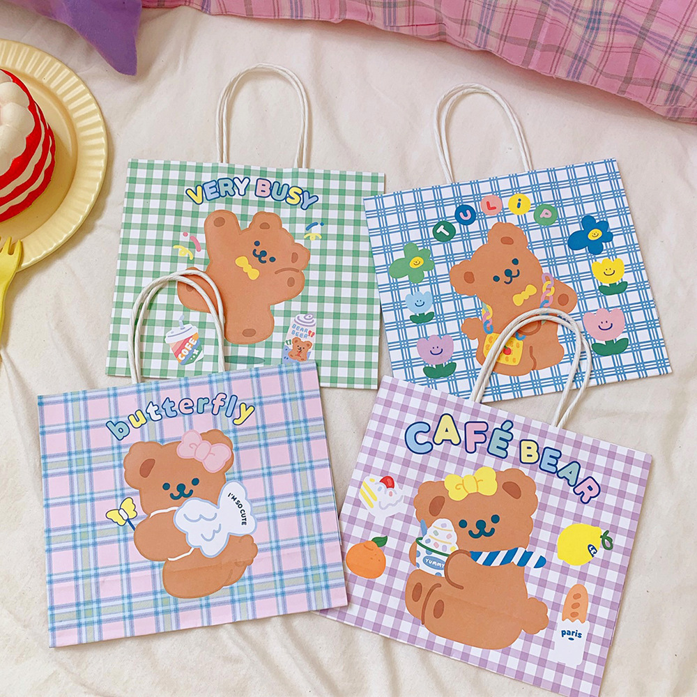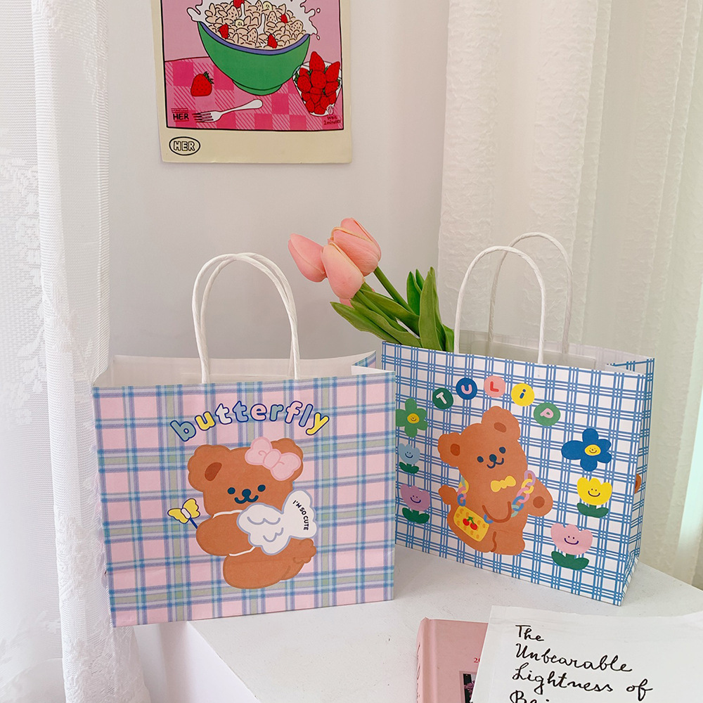 可爱ins简约卡通韩风萌熊纸袋手提购物袋包装袋礼品礼物袋收纳袋