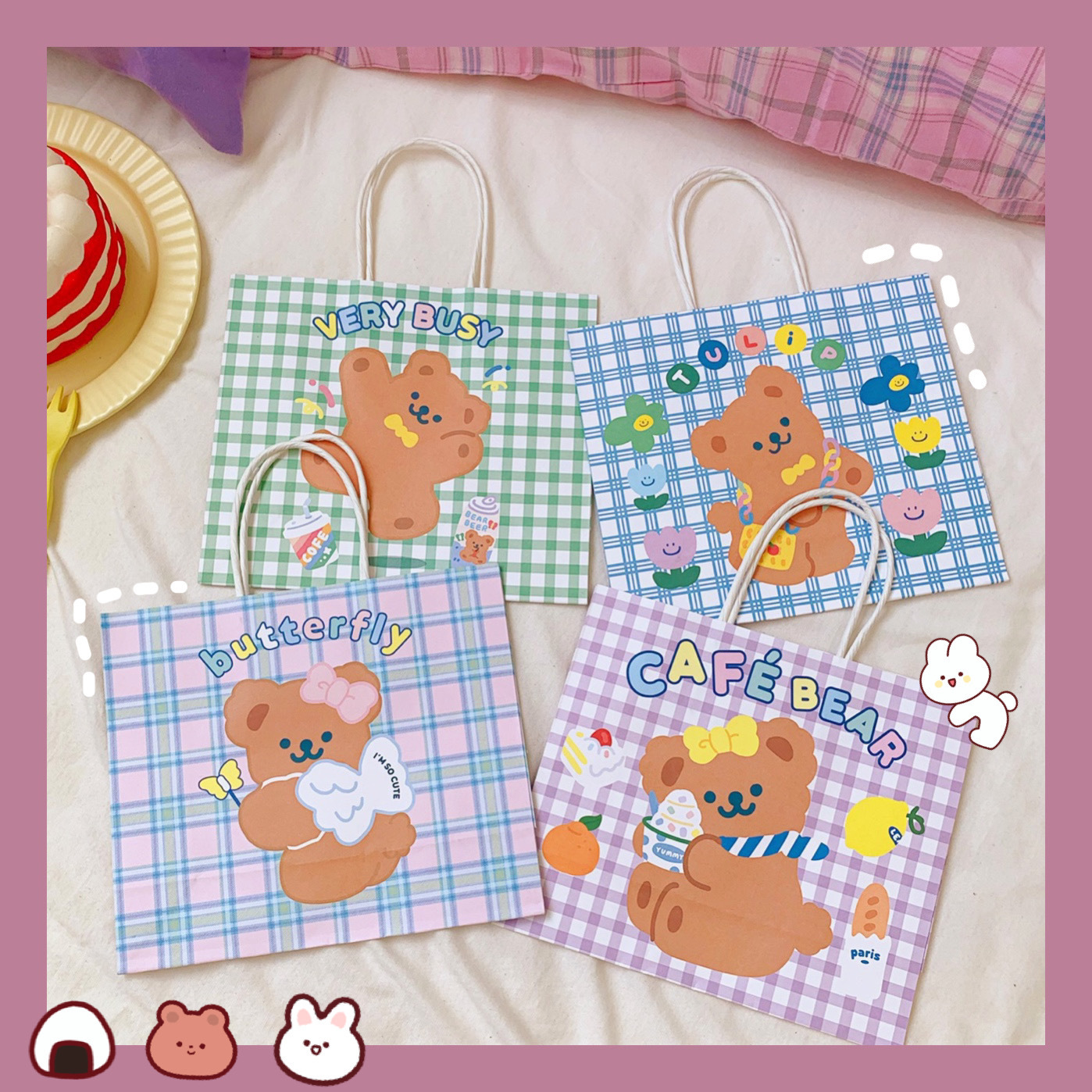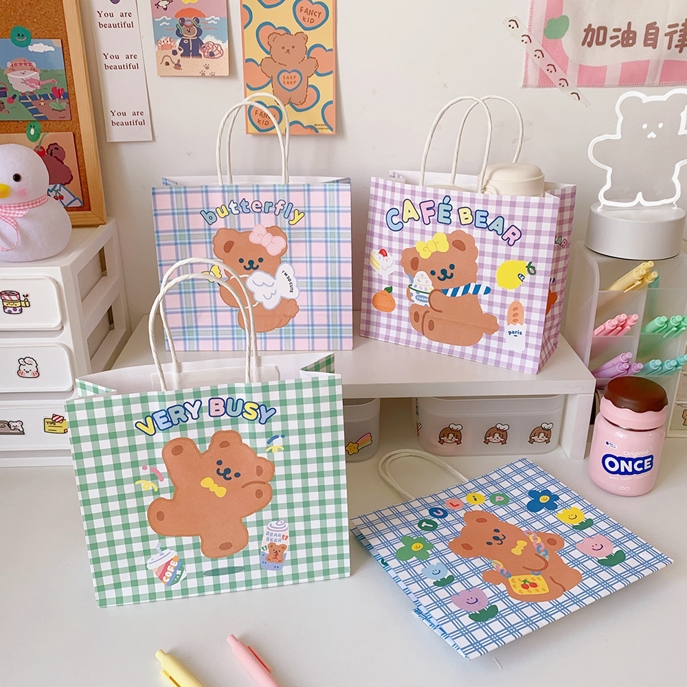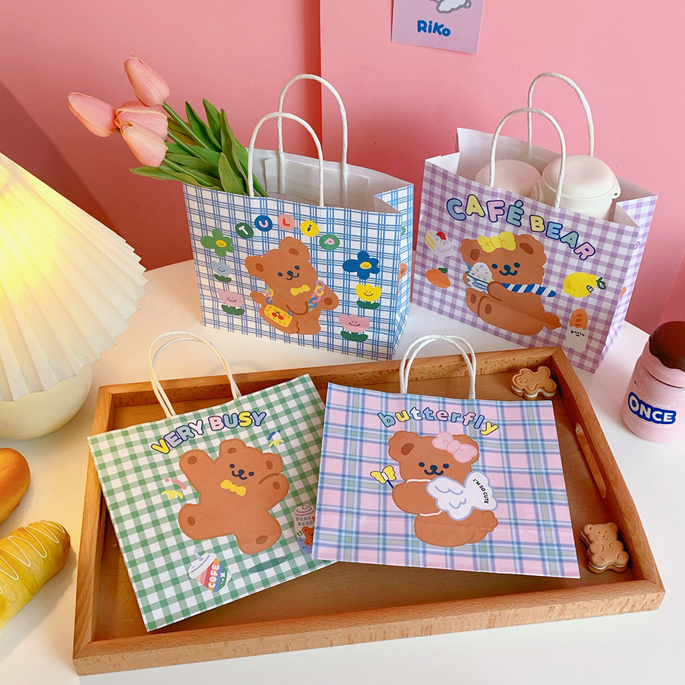 可爱ins简约卡通韩风萌熊纸袋手提购物袋包装袋礼品礼物袋收纳袋