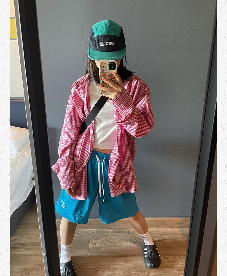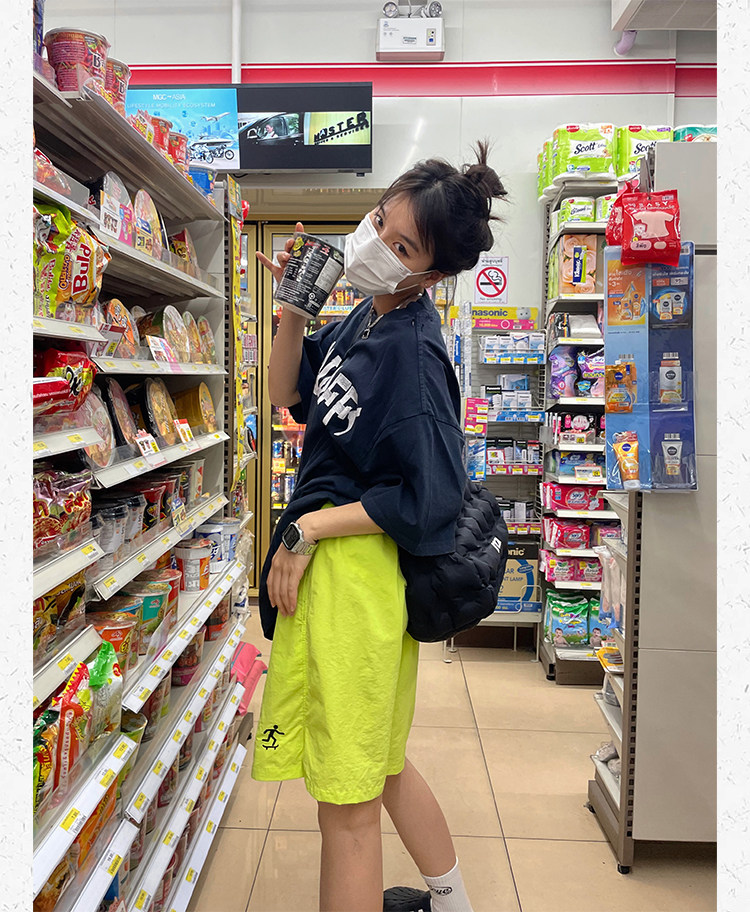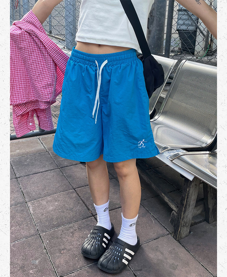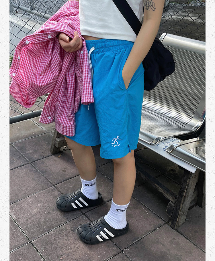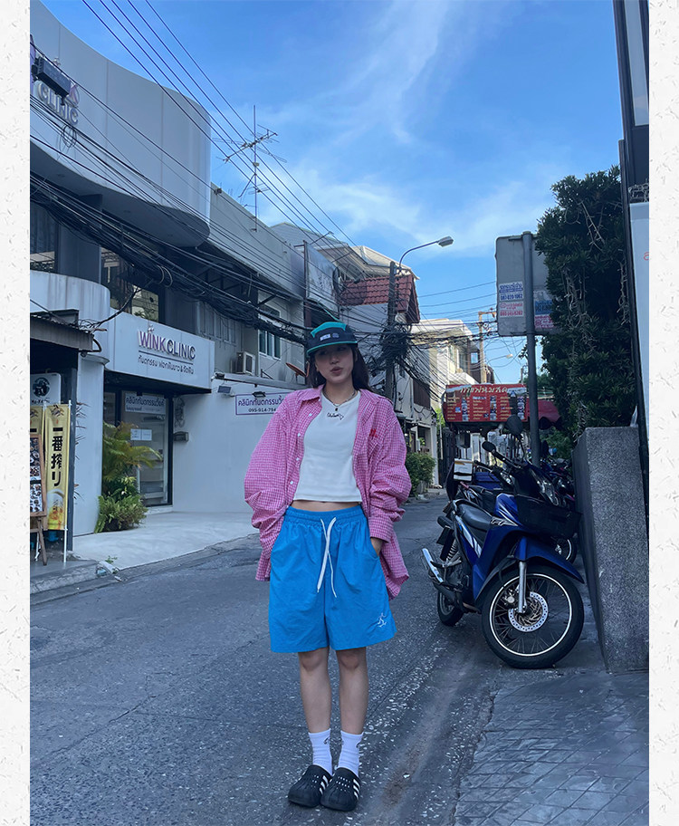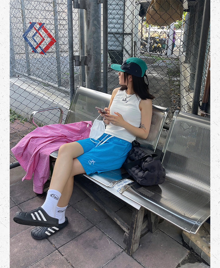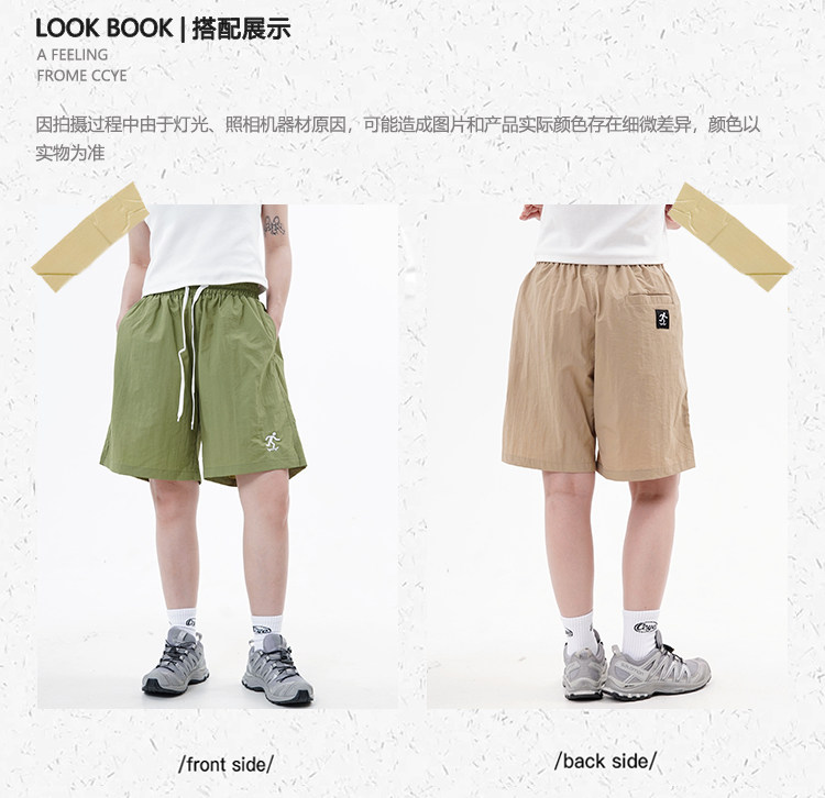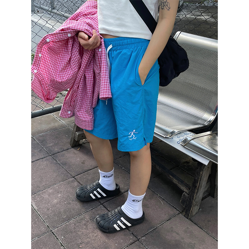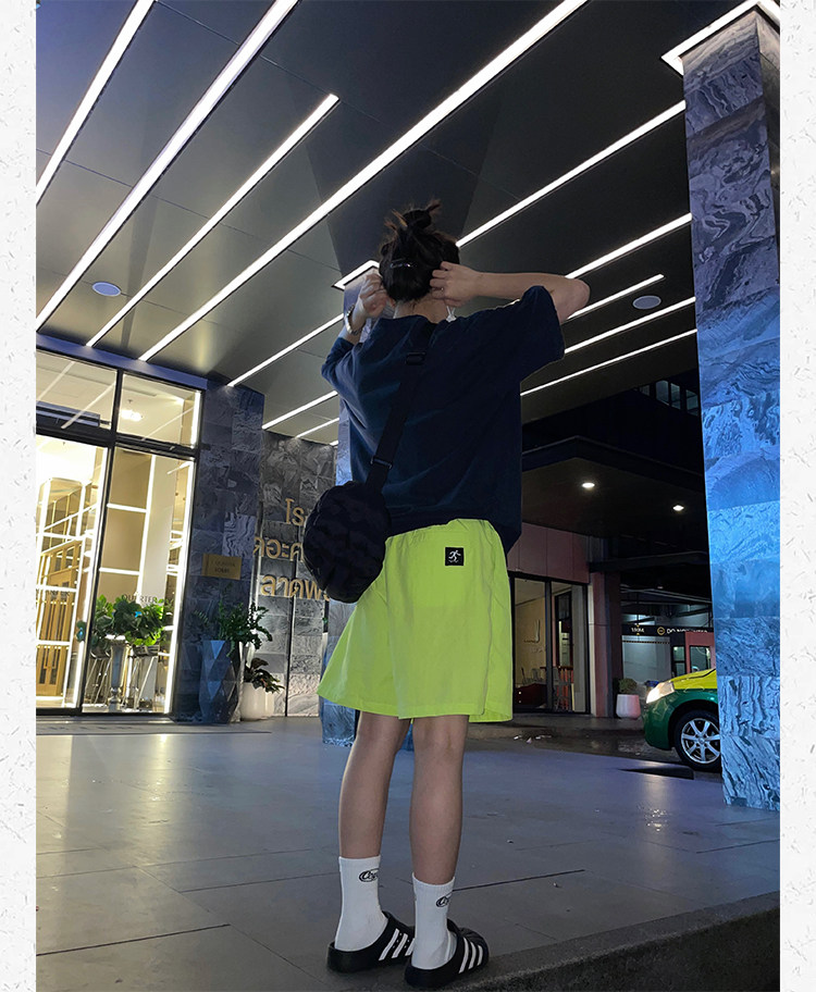 川川也美式街頭不過膝五分運動短褲男女復古休閒高腰寬鬆潮牌薄款