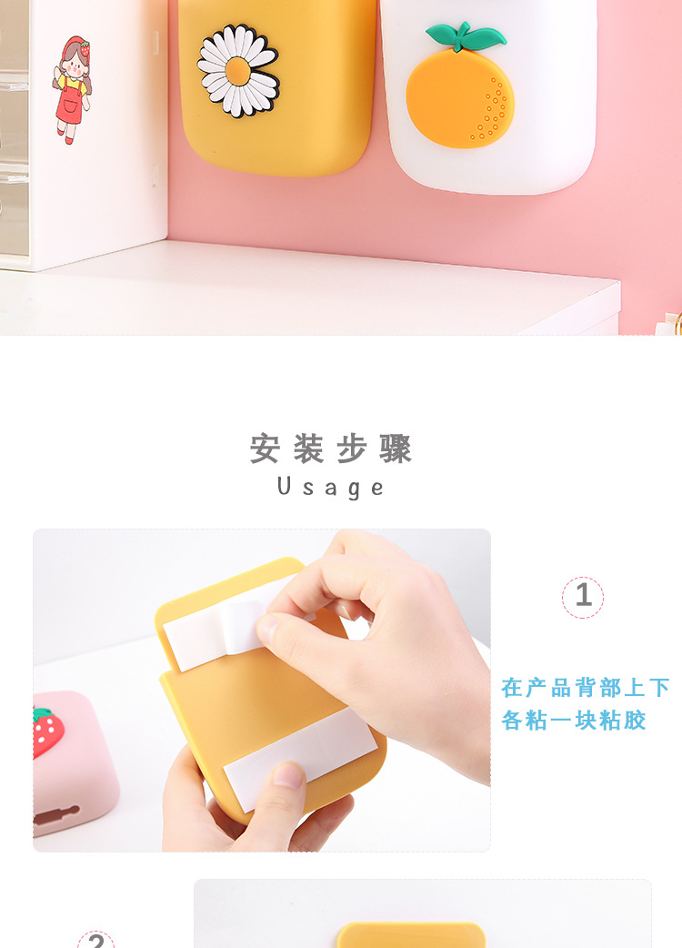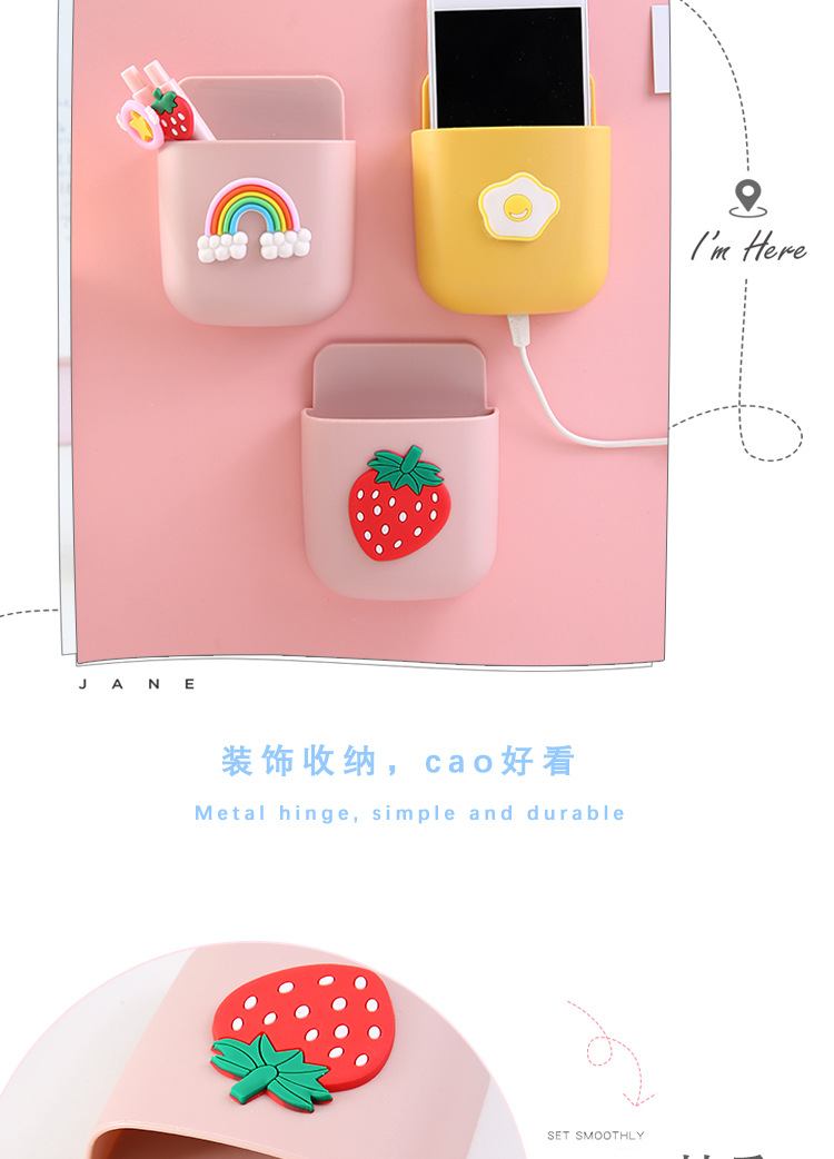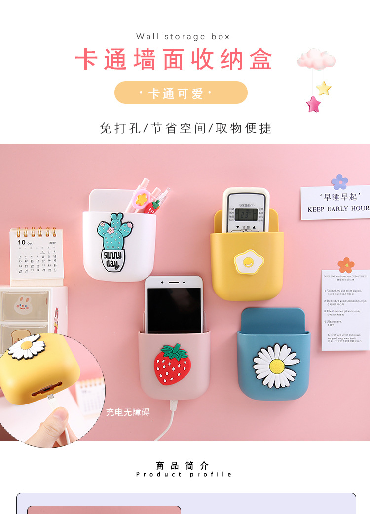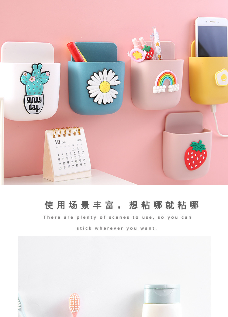 可爱ins遥控器收纳盒卡通床头手机挂架文具化妆刷墙上壁挂置物架