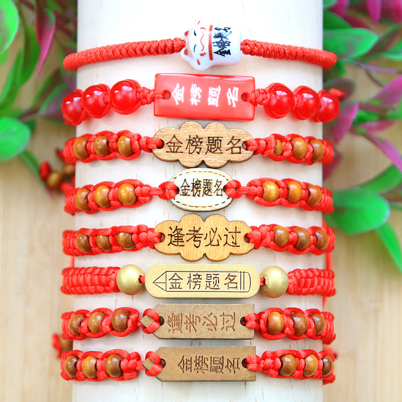 中高考加油鼓励小礼物刻字金榜题名手链批发学生红色逢考必过手绳