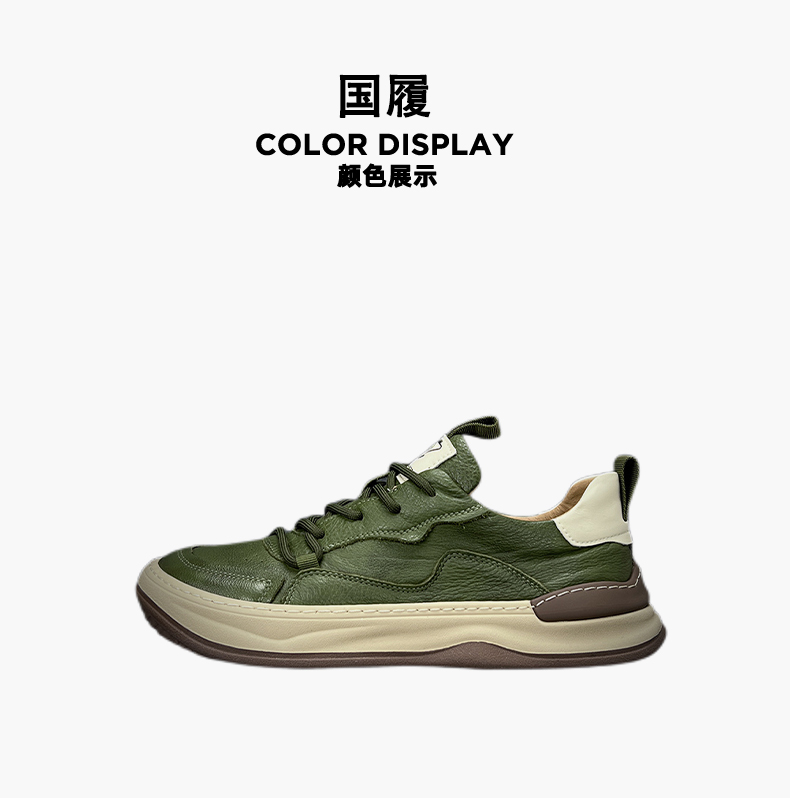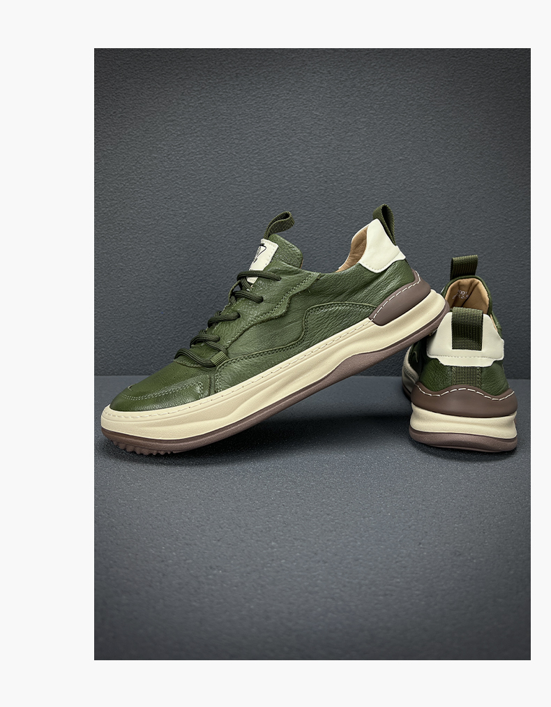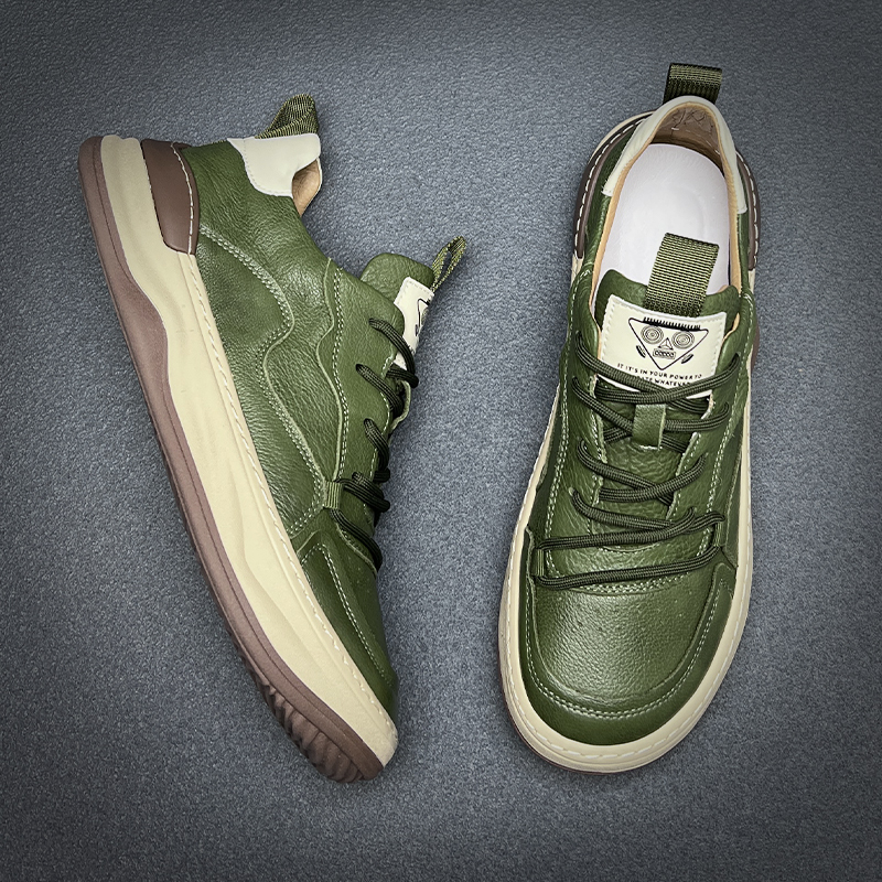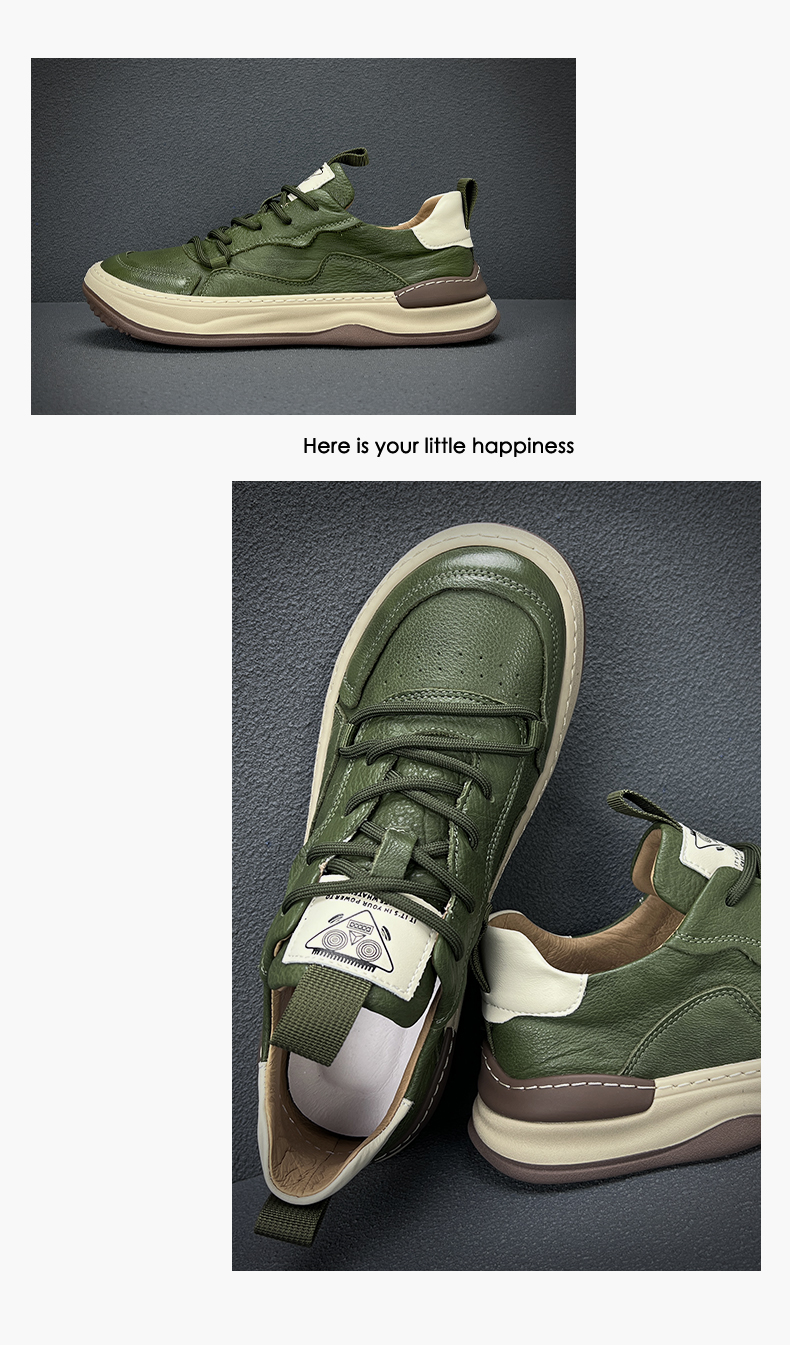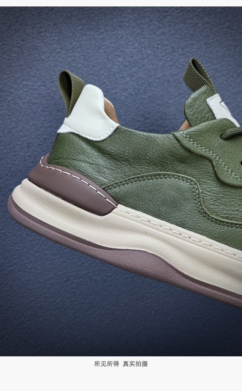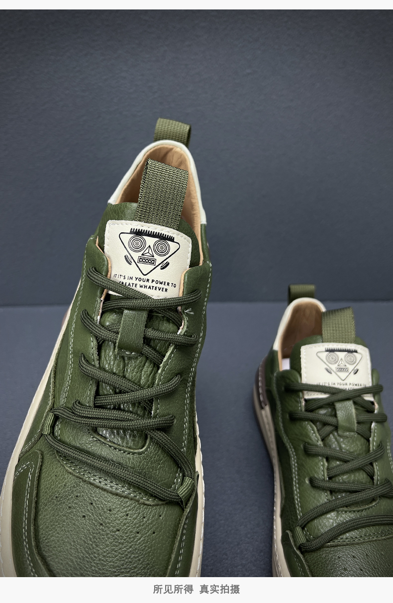 潮牌男鞋真皮軟底休閒板鞋2023年春季新款潮流歪頭綠色百搭小醜鞋