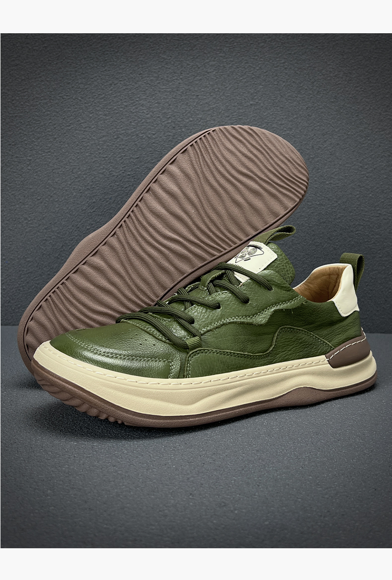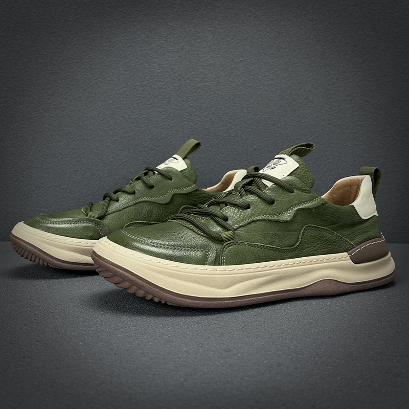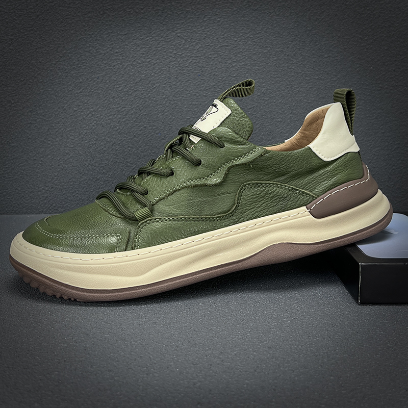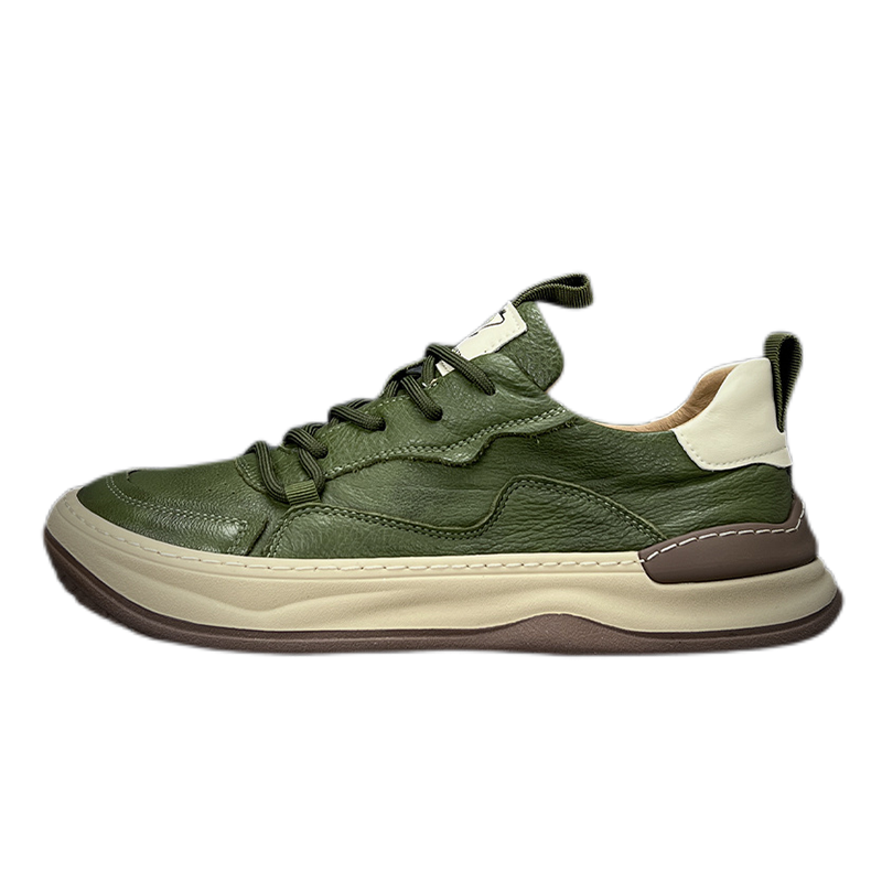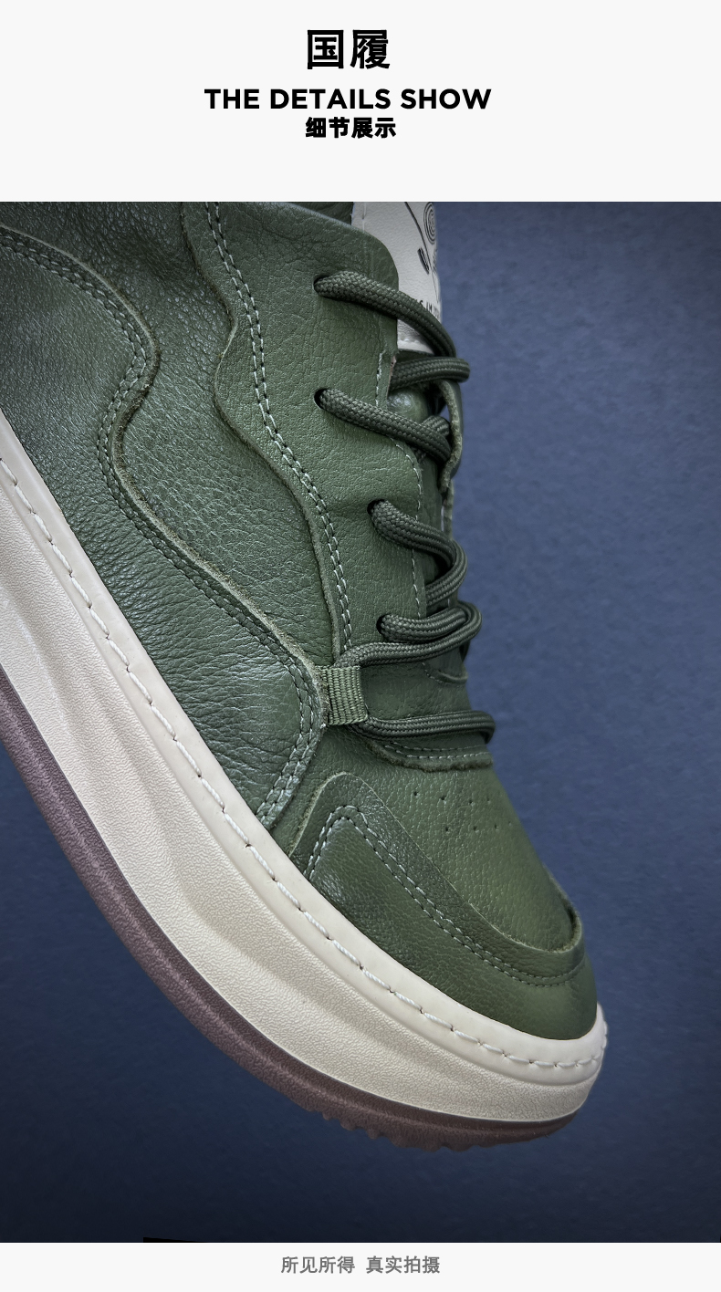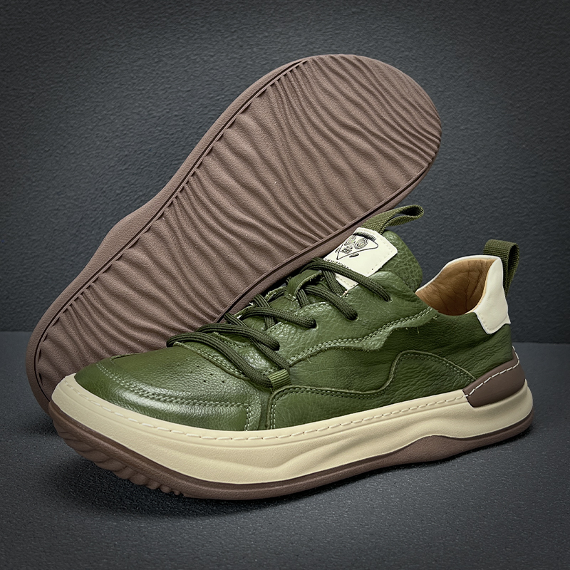潮牌男鞋真皮軟底休閒板鞋2023年春季新款潮流歪頭綠色百搭小醜鞋