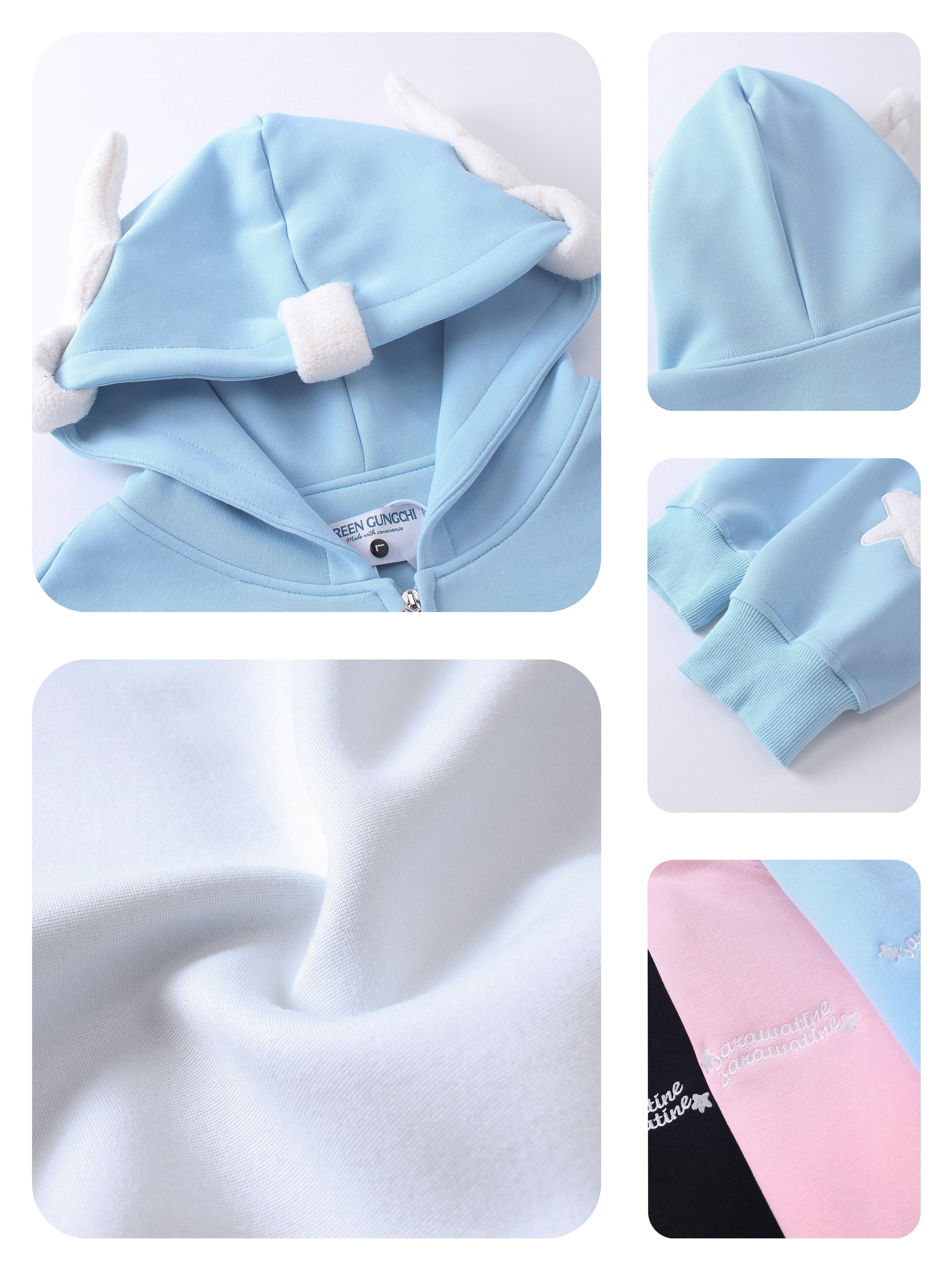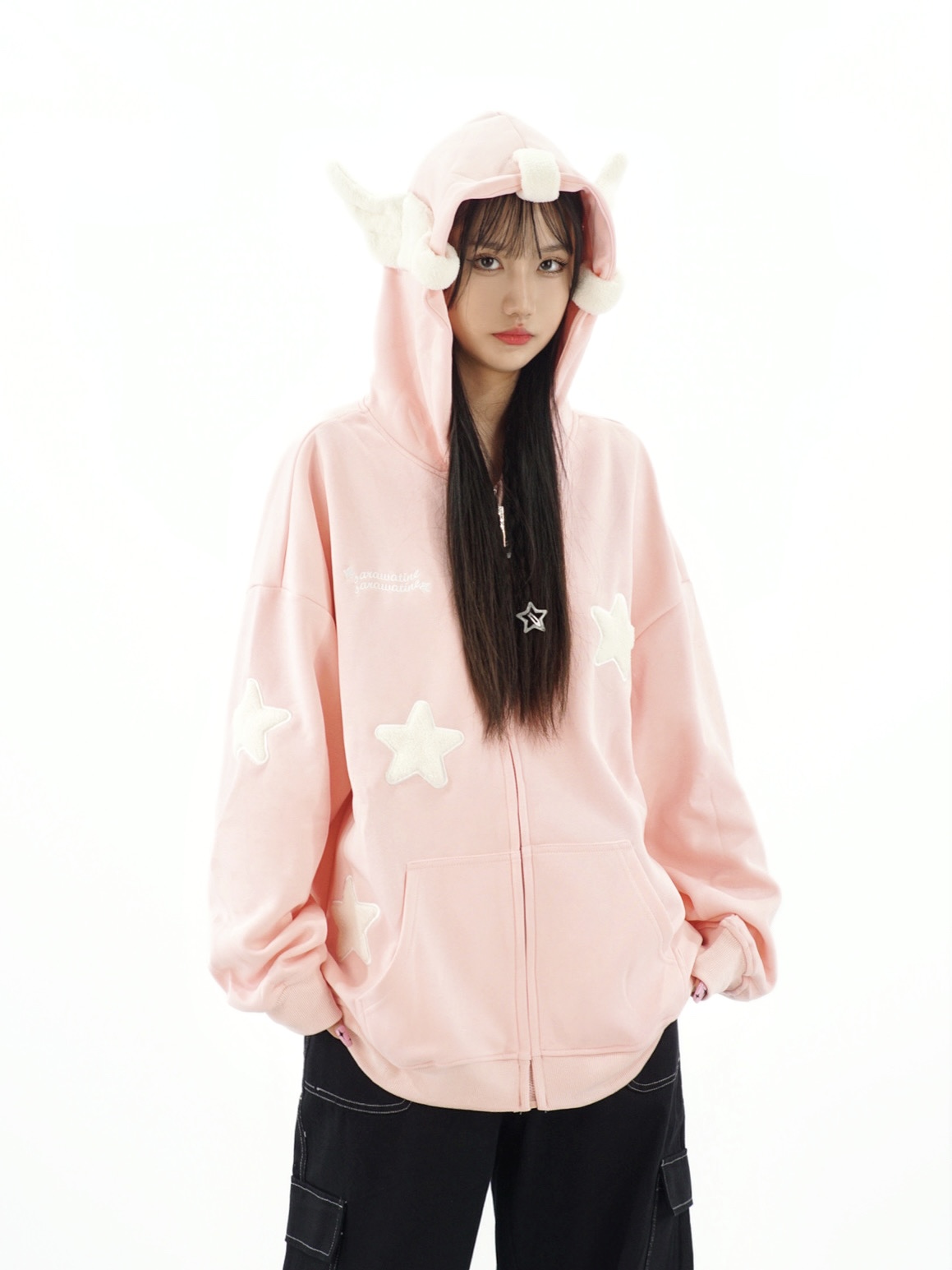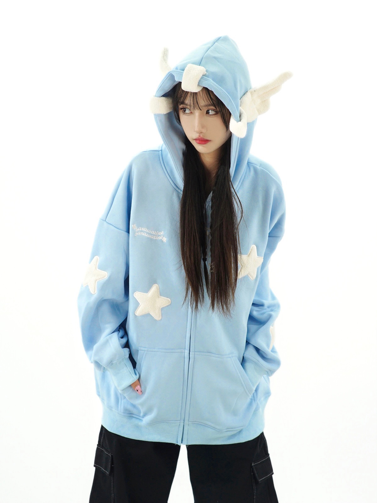Amoeba原創甜酷可愛星星翅膀連帽運動衫拉鍊開衫秋季情侶設計感外套