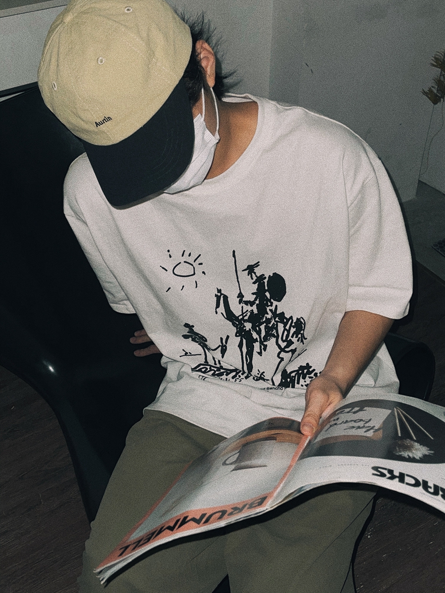 Longroad *堂·吉訶德*經典文學手繪小眾設計短袖tee日系純棉T恤