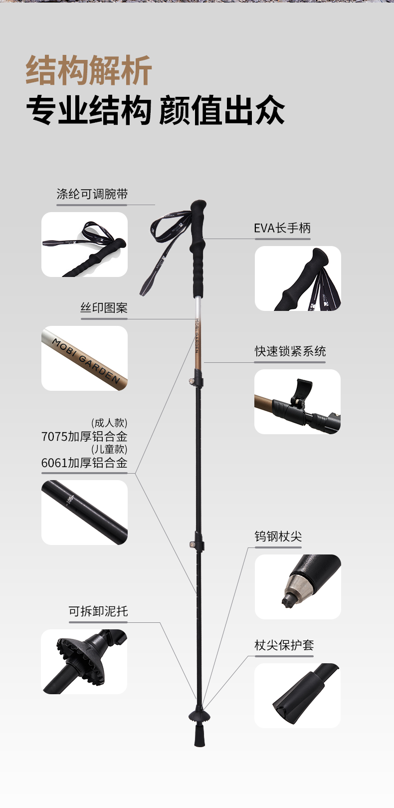 牧高笛戶外兒童登山杖男女款徒步手杖超輕鋁合金外鎖伸縮爬山柺杖