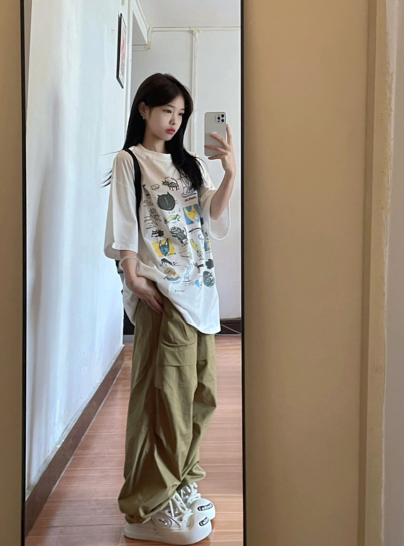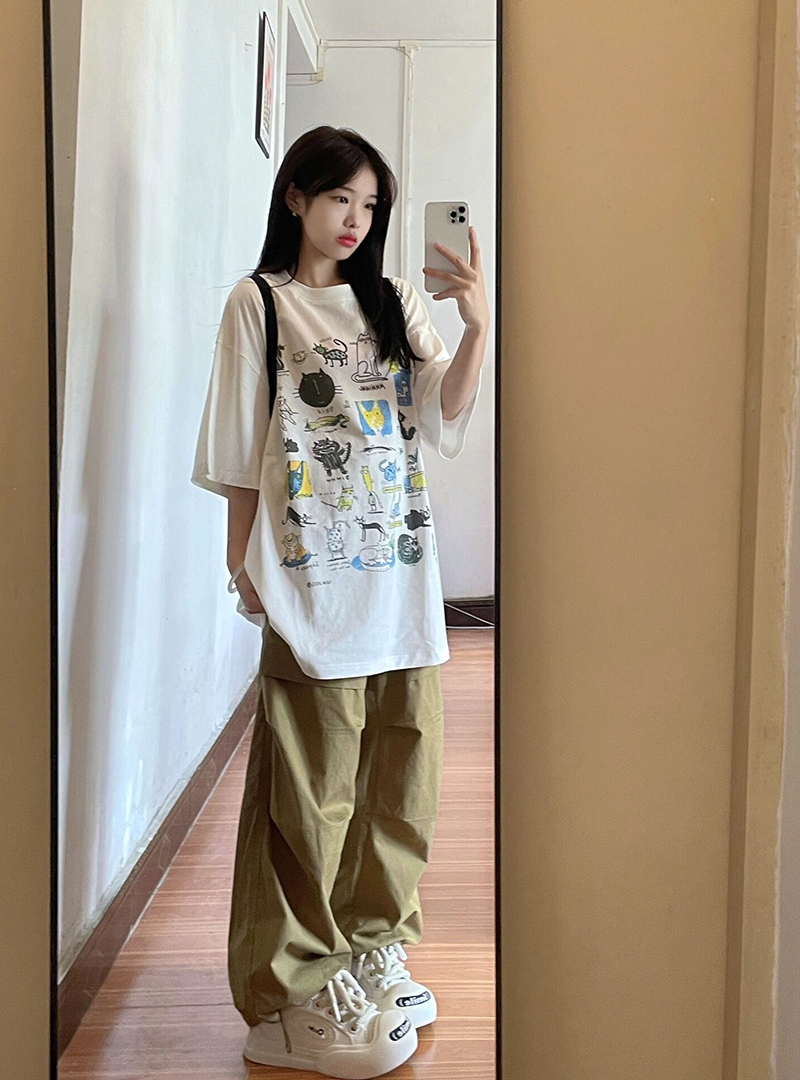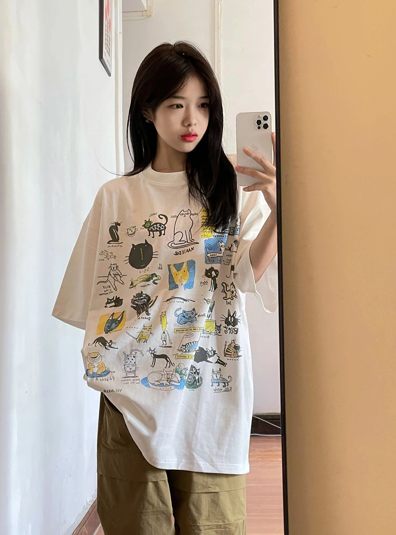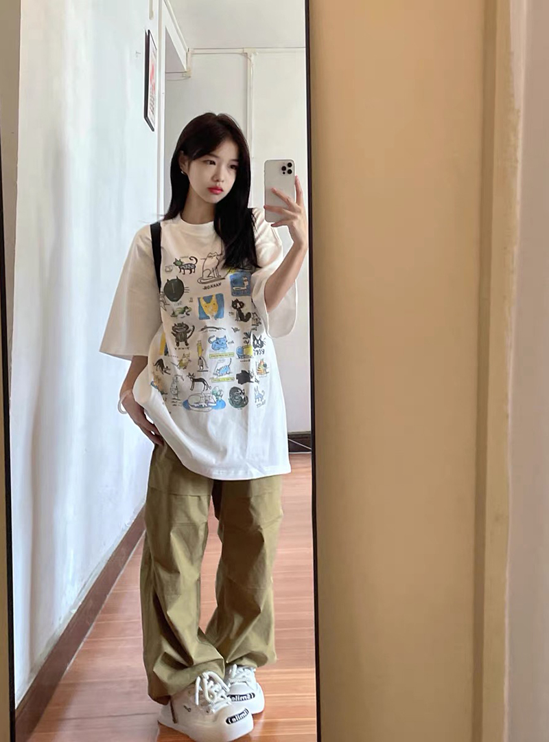 港風chic超好看白色卡通短袖T恤女夏季寬鬆oversize休閒百搭上衣