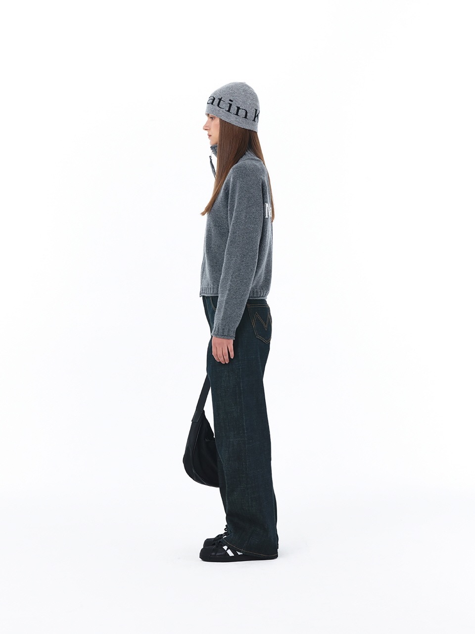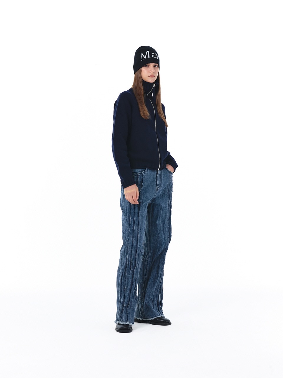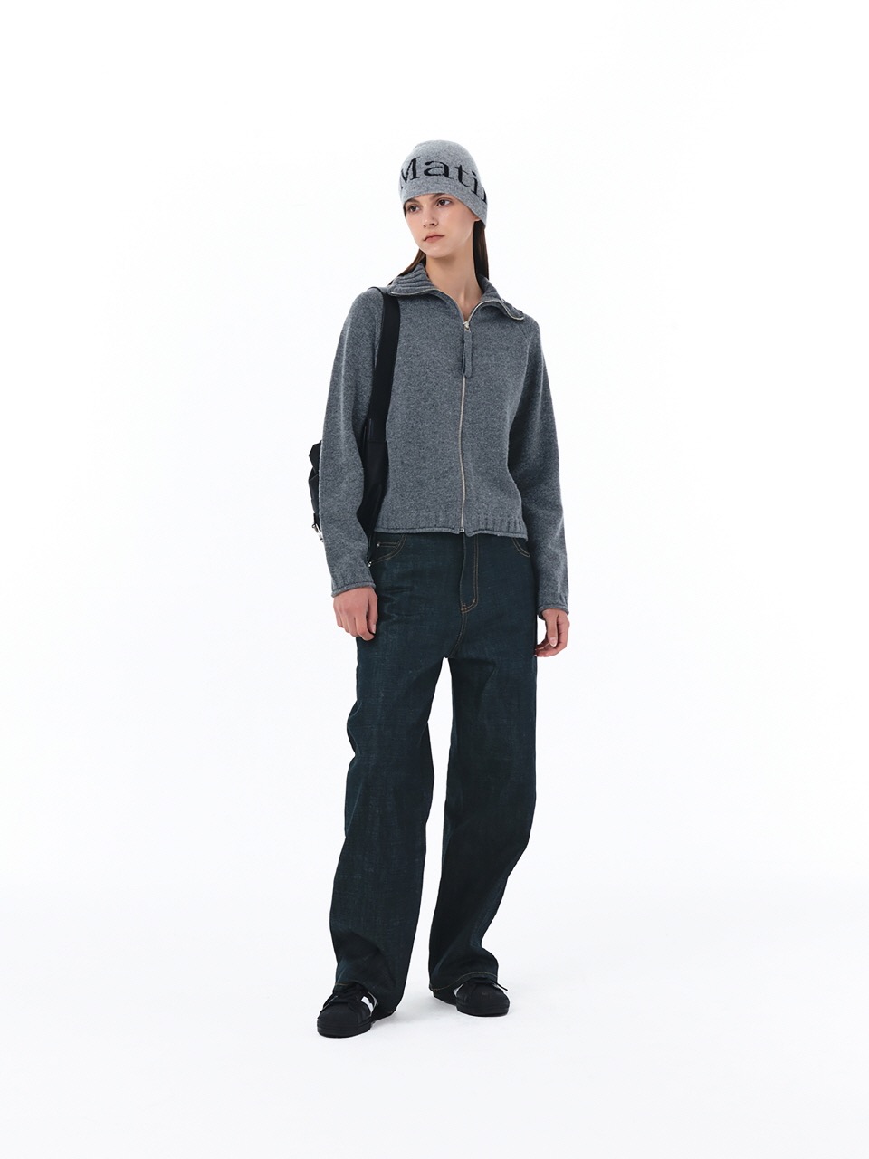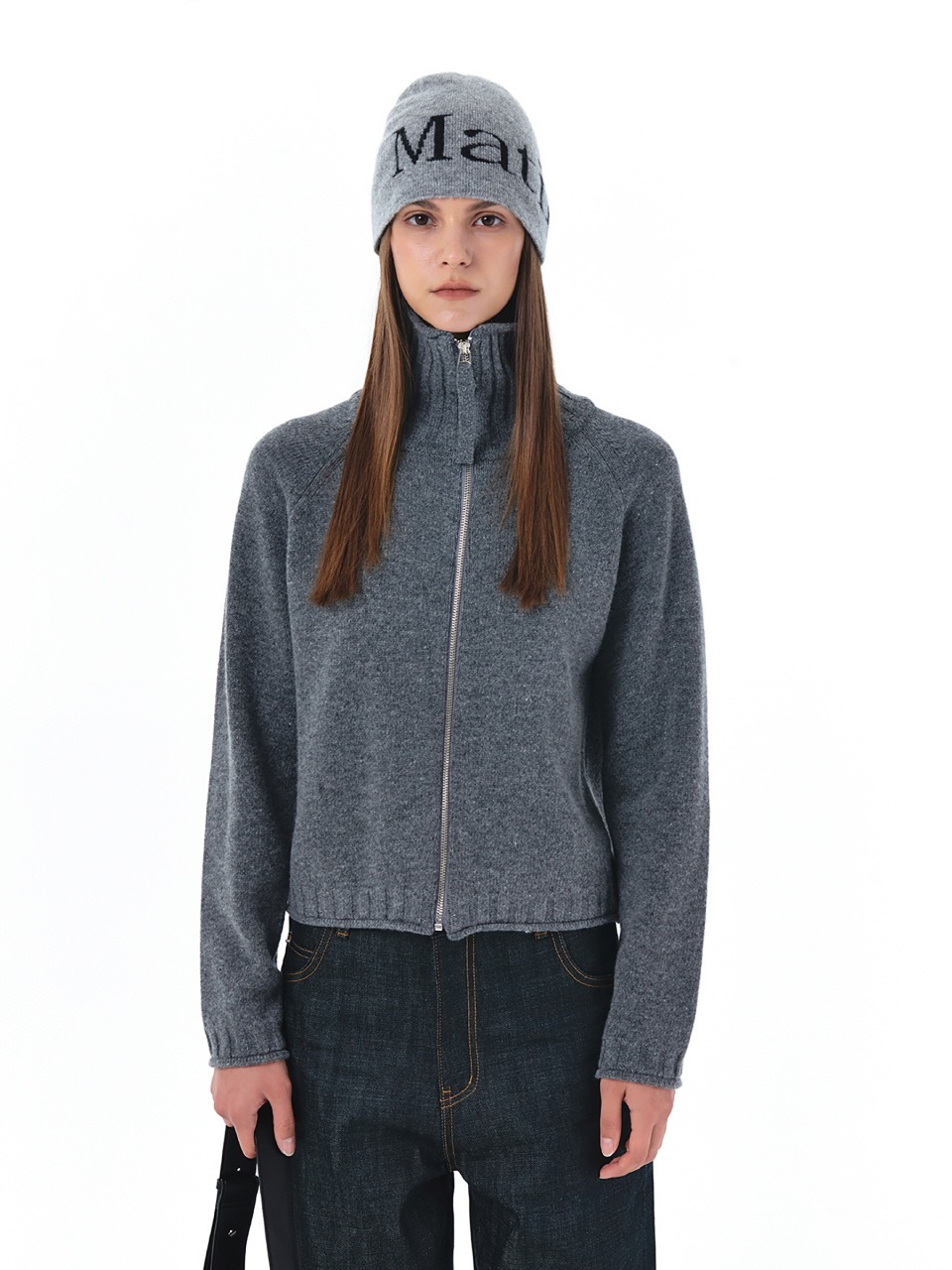 [i4p STUDIO] matin kim 22秋冬 高領後背logo拉鍊針織開衫毛衣