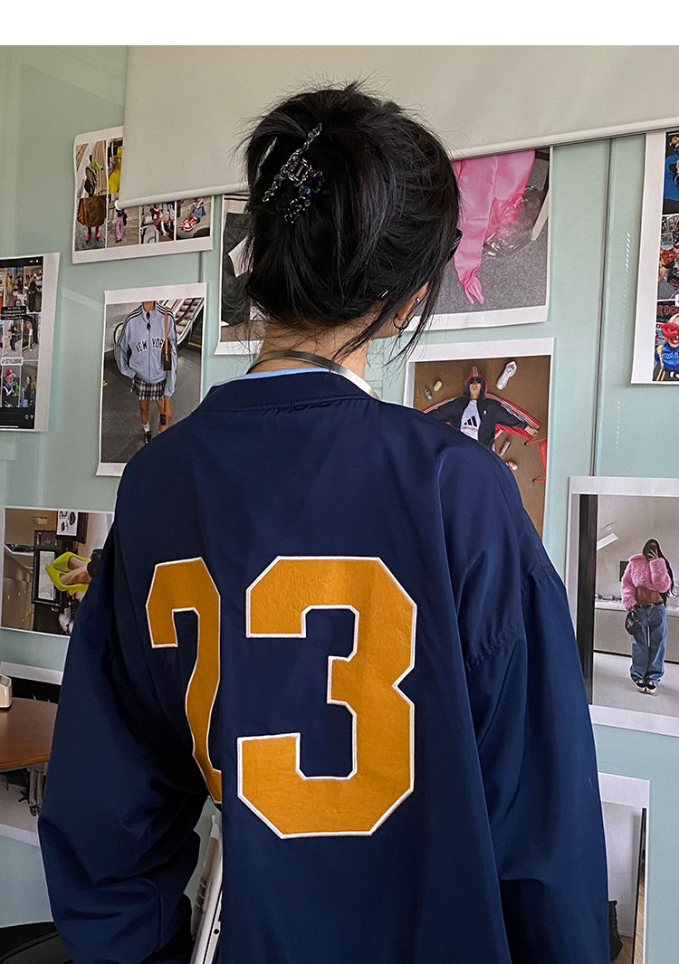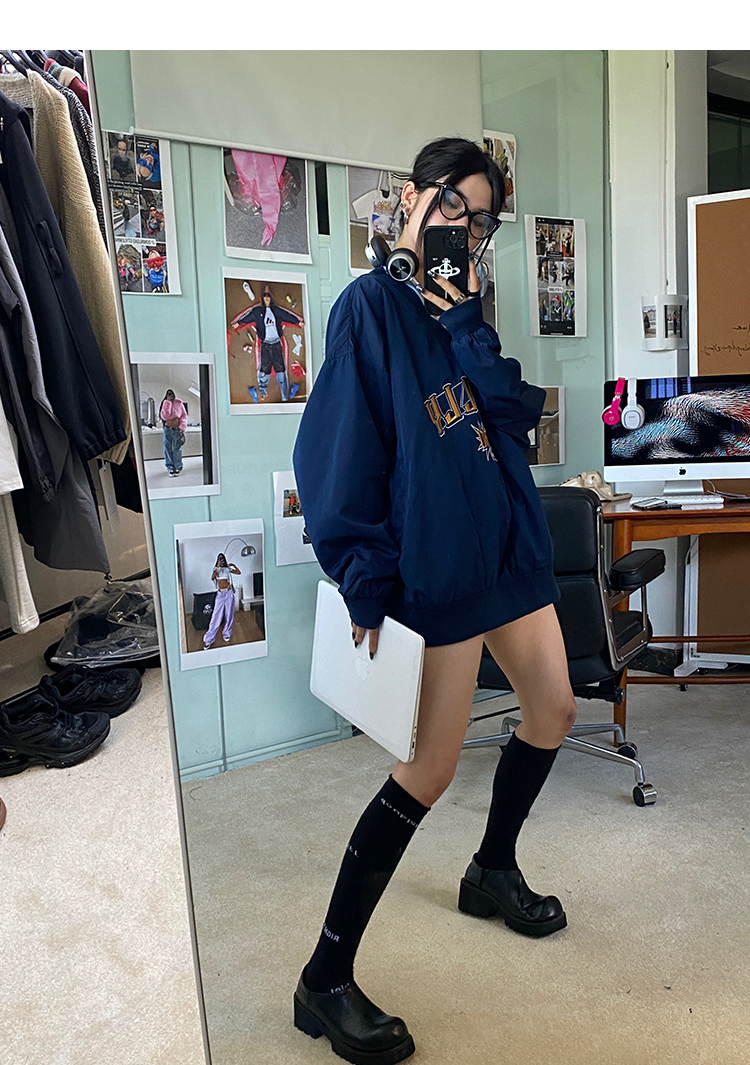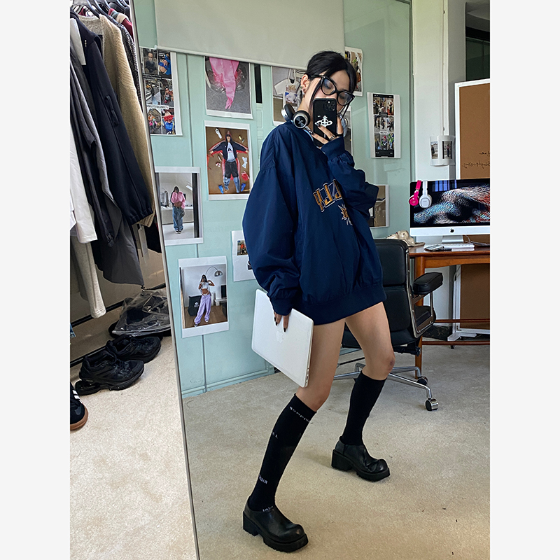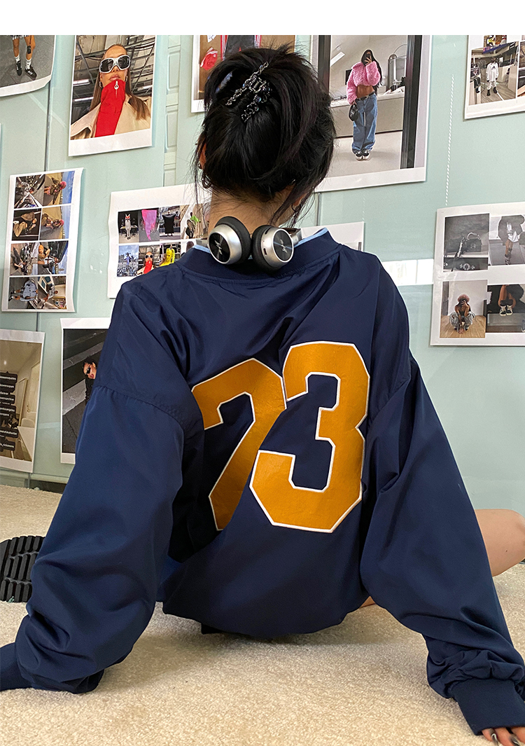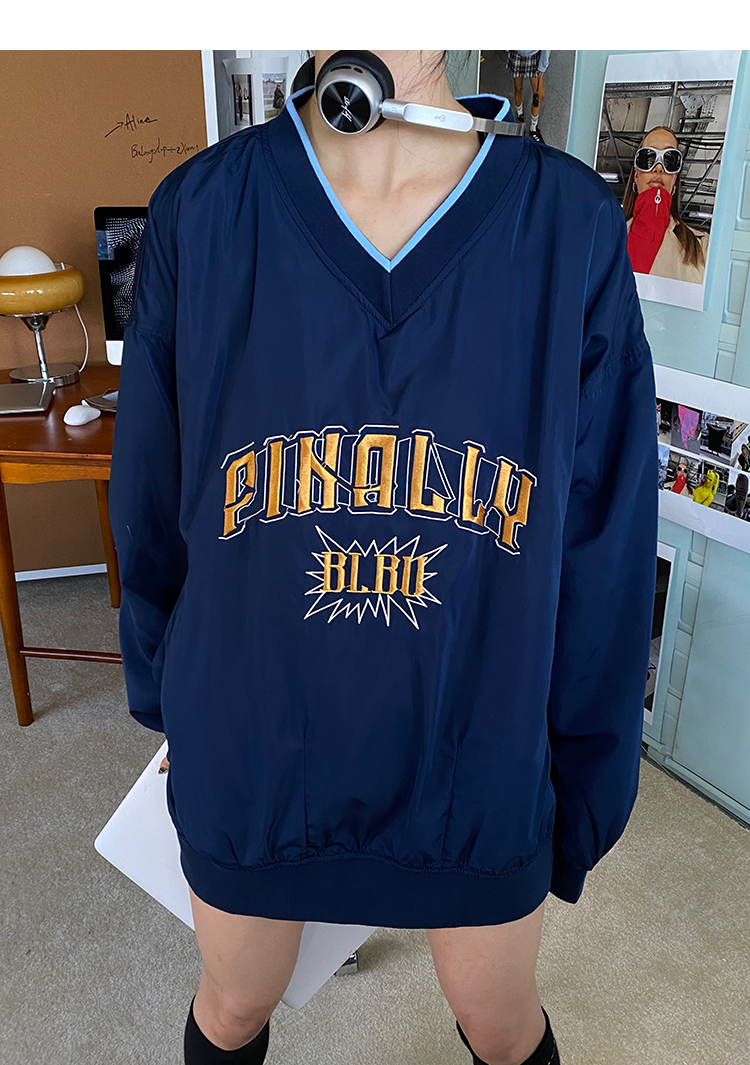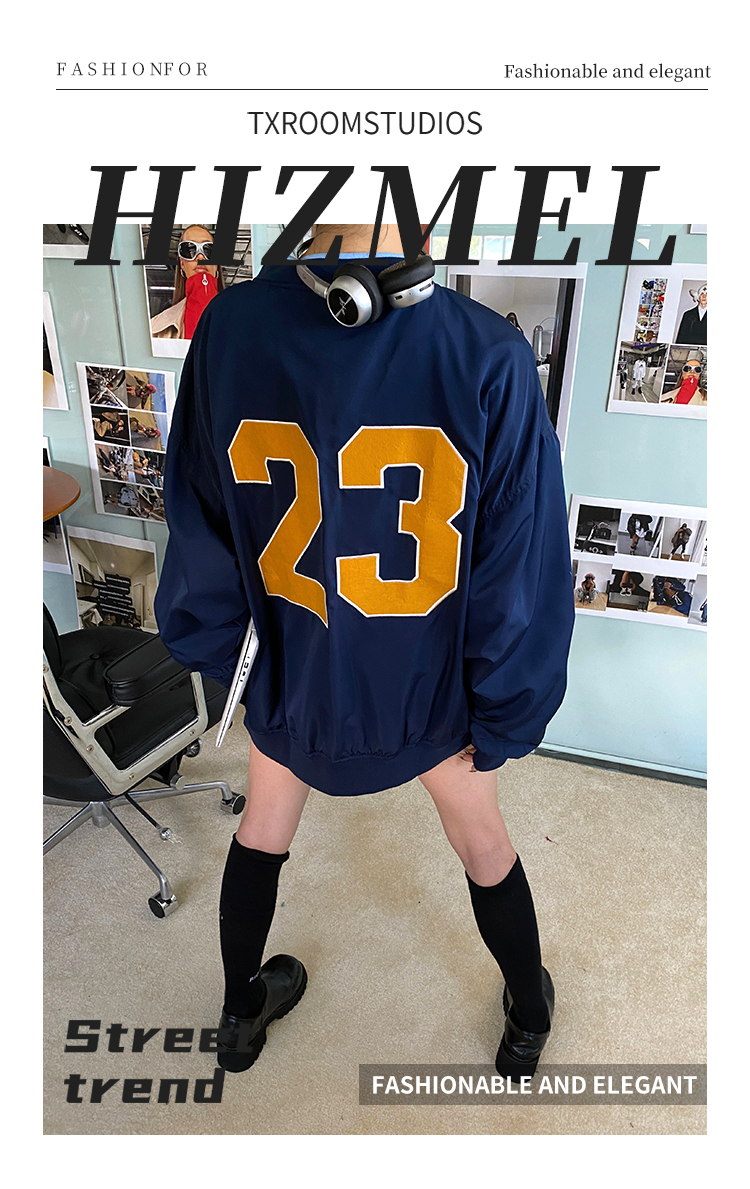 何以沫美式復古棒球服衛衣女2023秋季潮牌刺繡寬鬆V領套頭衫ins潮