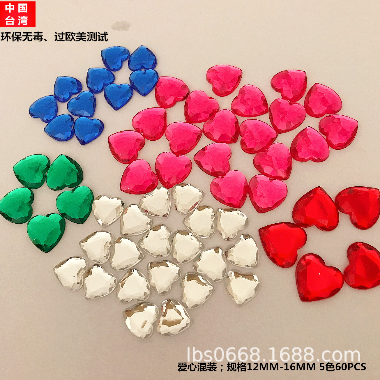 形状; 心形平底12MM-16MM5种颜色共60粒   (需要备胶或胶水可以一起拍下)