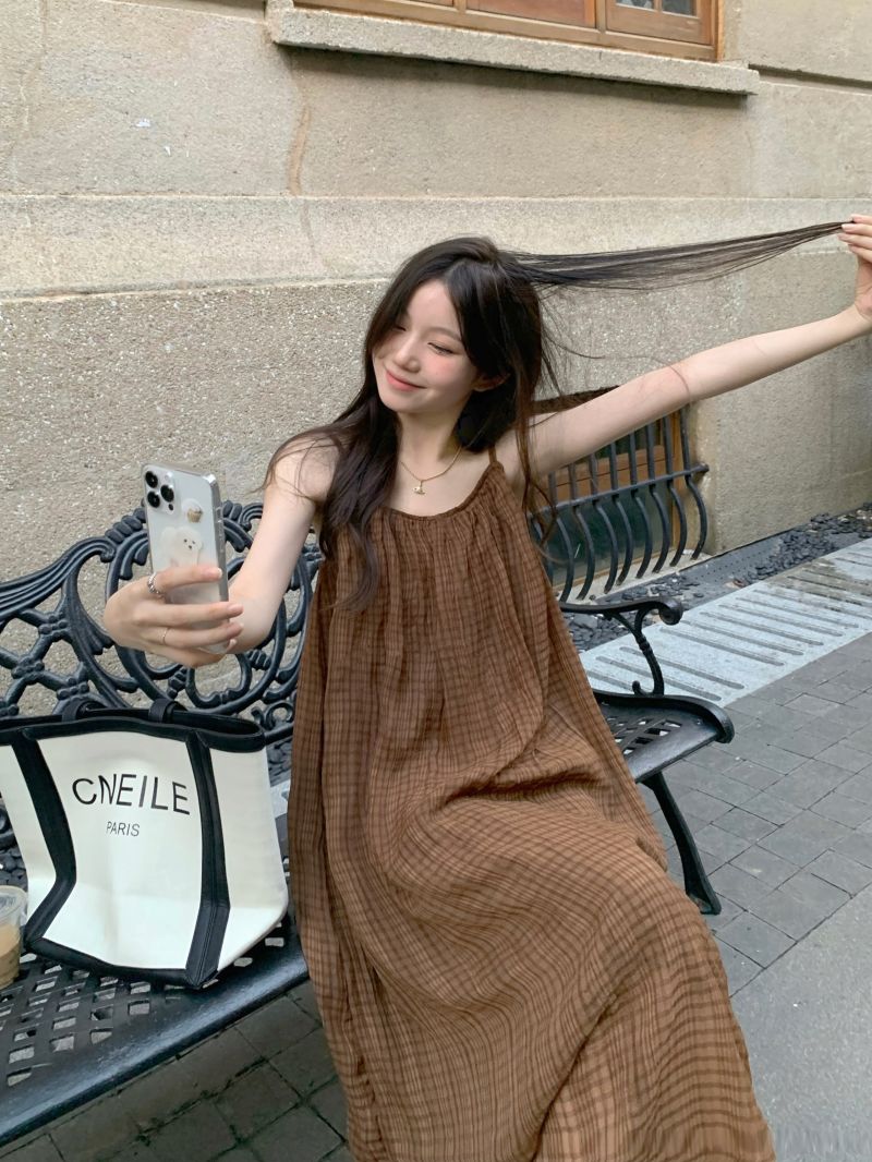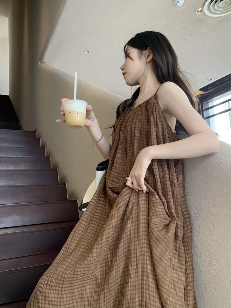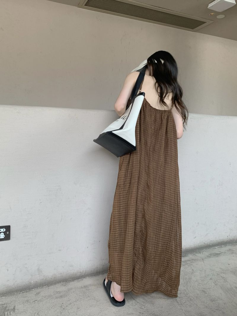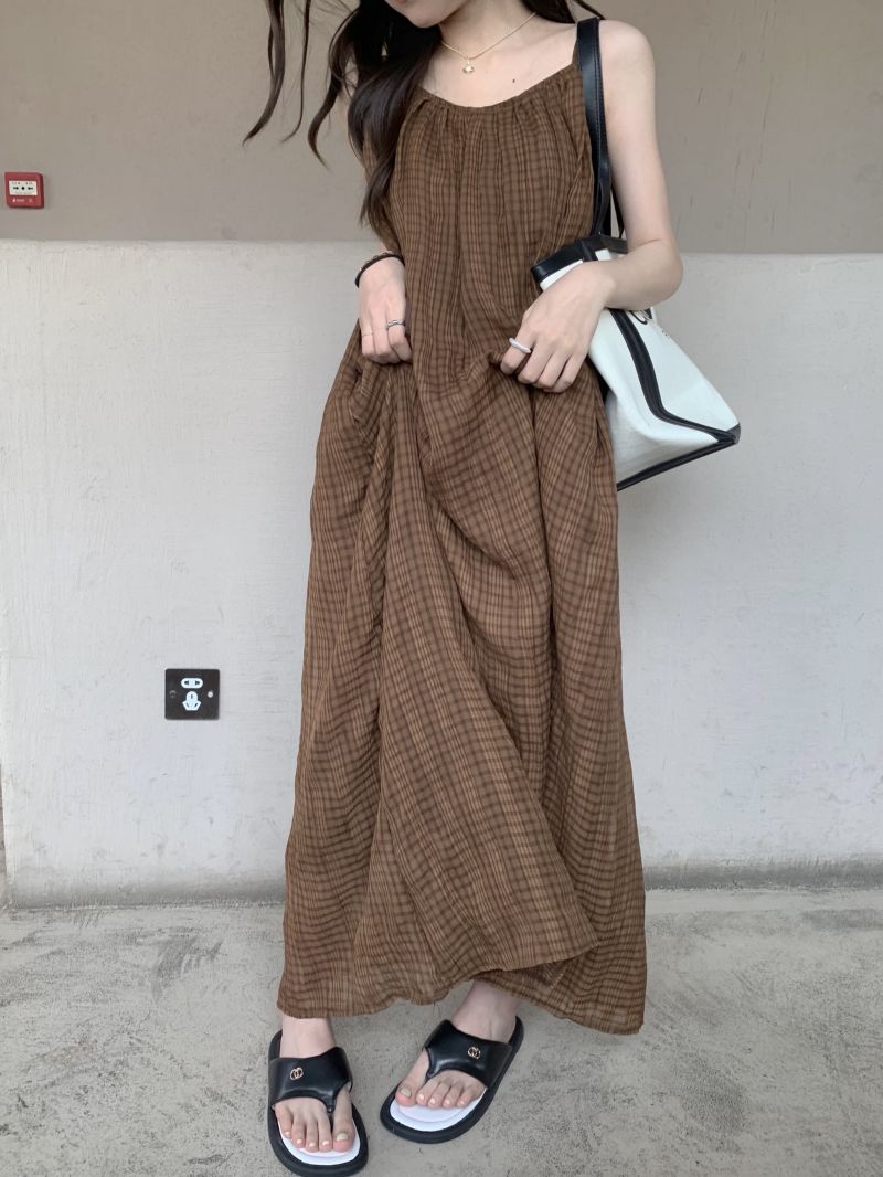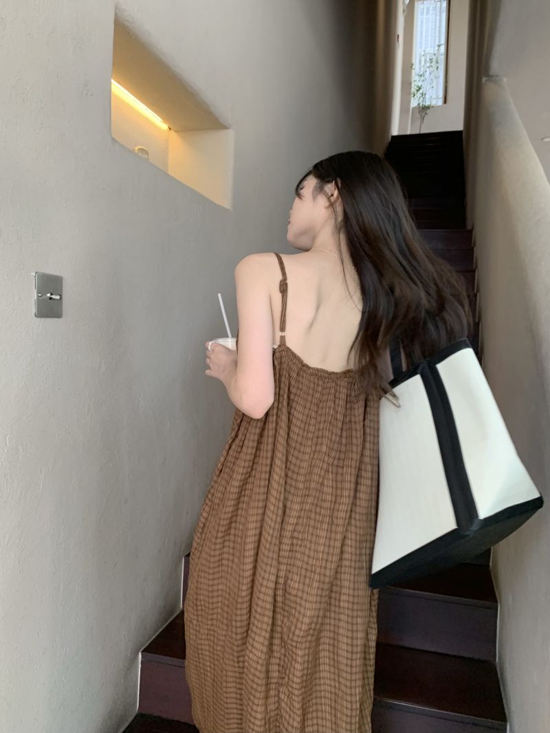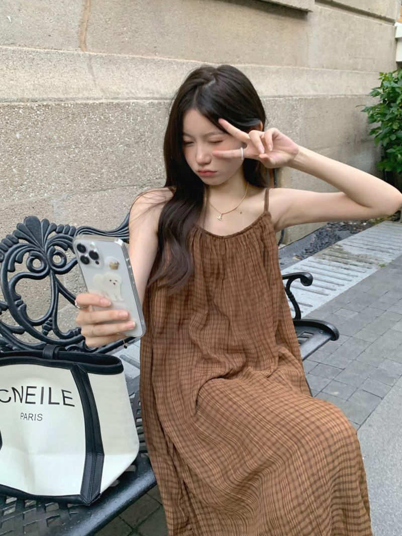 顏色分類 咖格紋吊帶裙