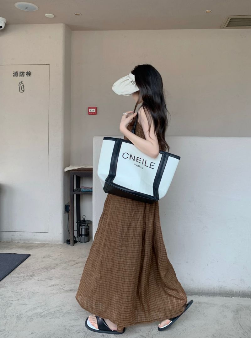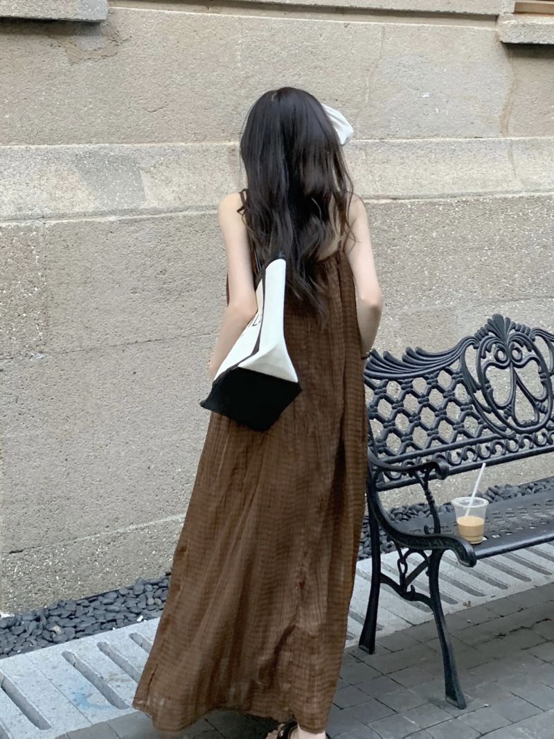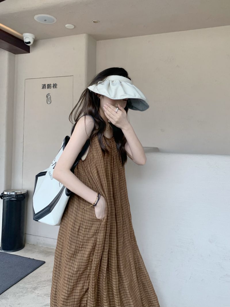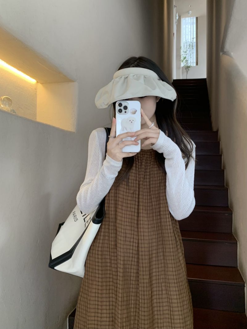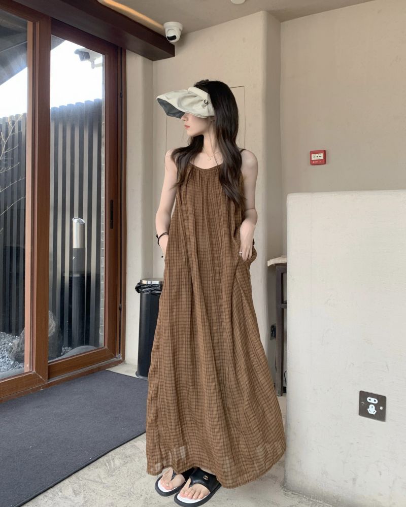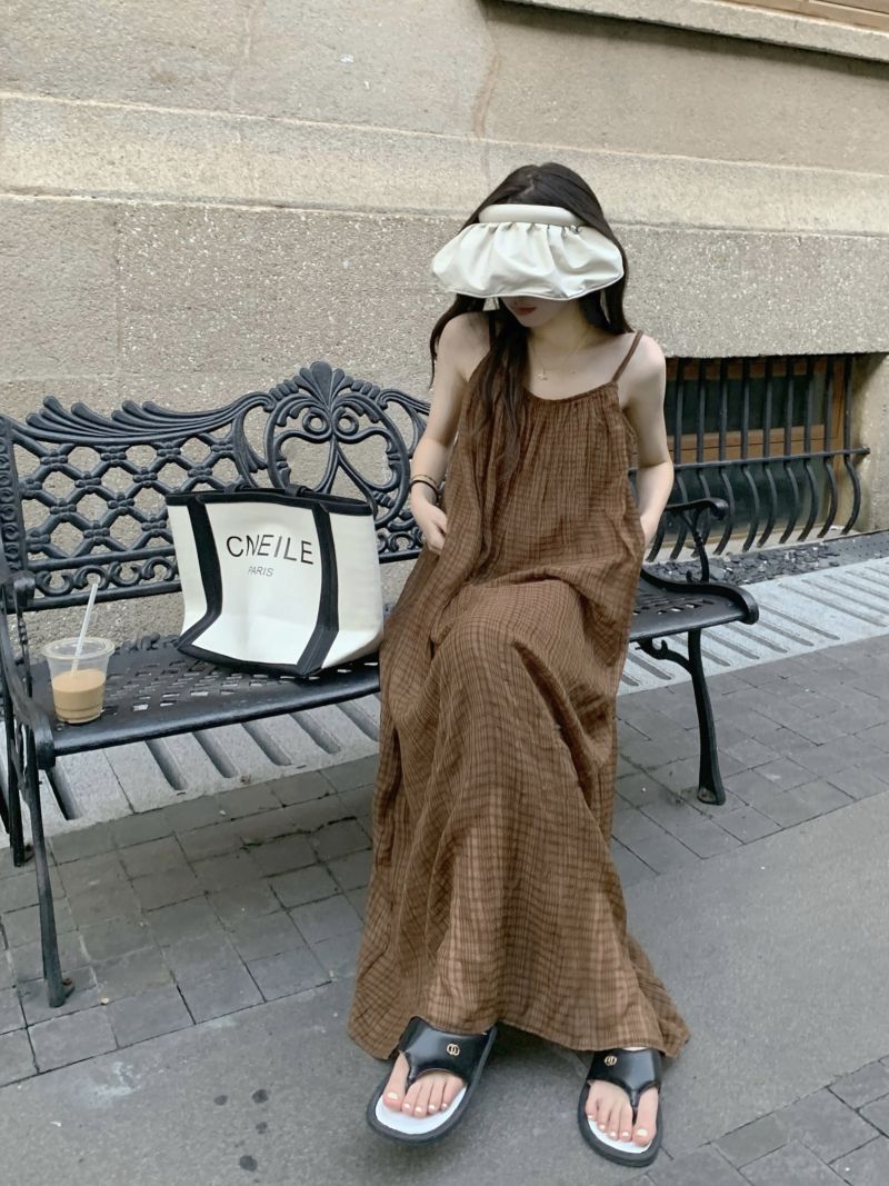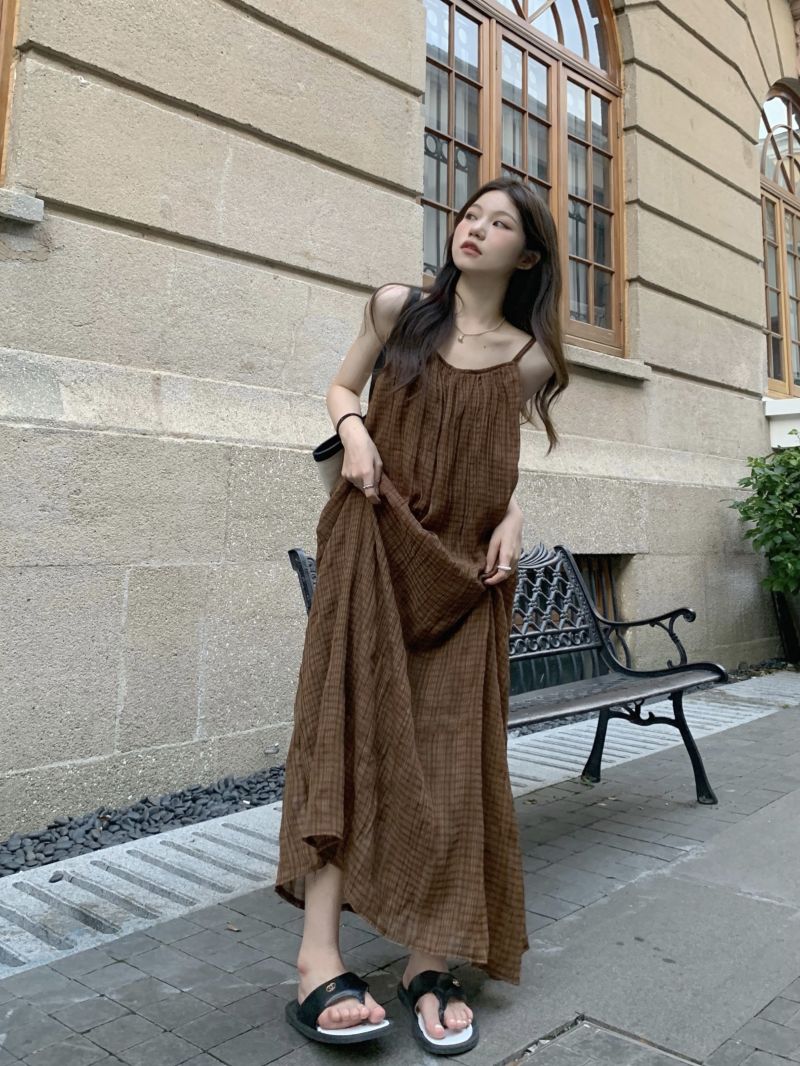 顏色分類 咖格紋吊帶裙