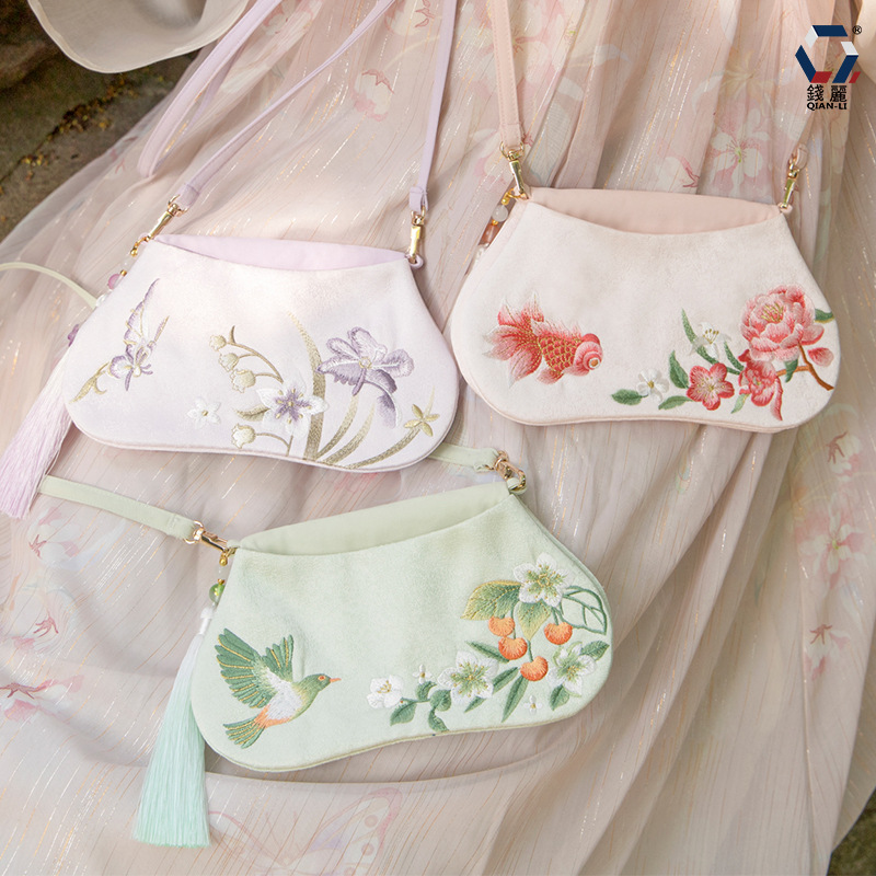 【钱丽】汉服包包古风复古刺绣锦鲤配饰包宋制腰包斜跨绣花包
