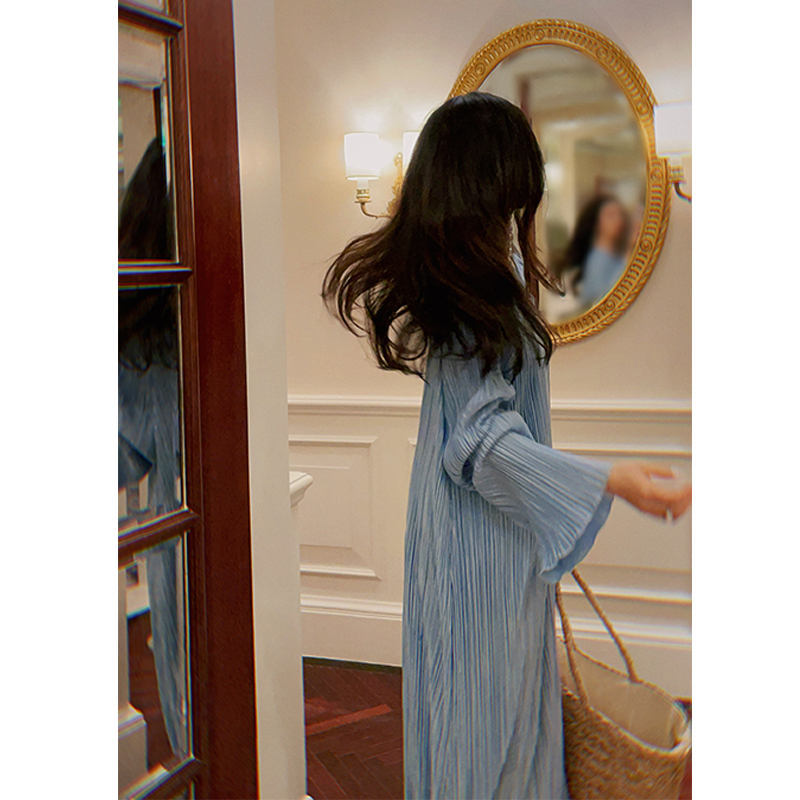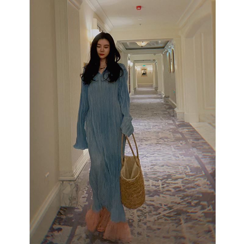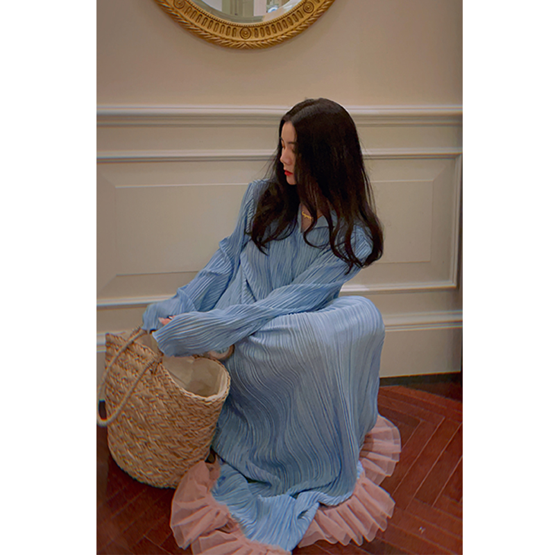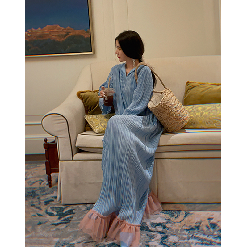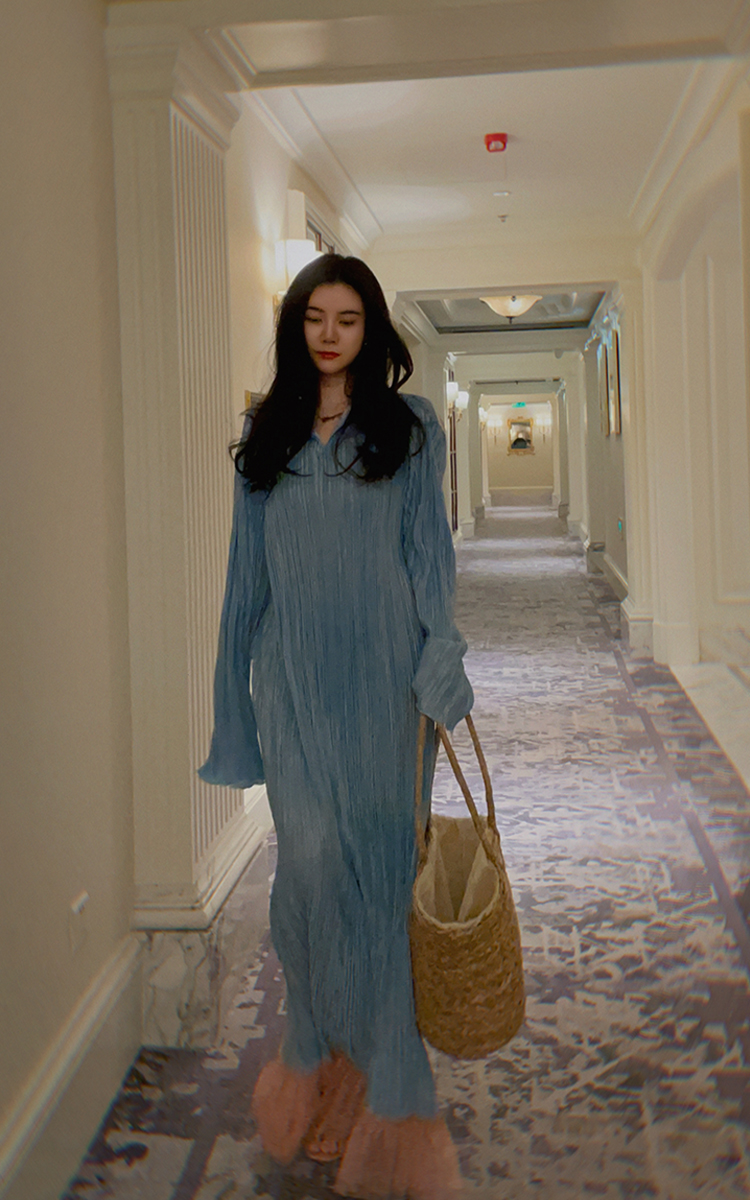 yanyan慵懶設計感百褶遮肉顯瘦顯高舒適洋裝寬鬆簡約三宅褶長裙