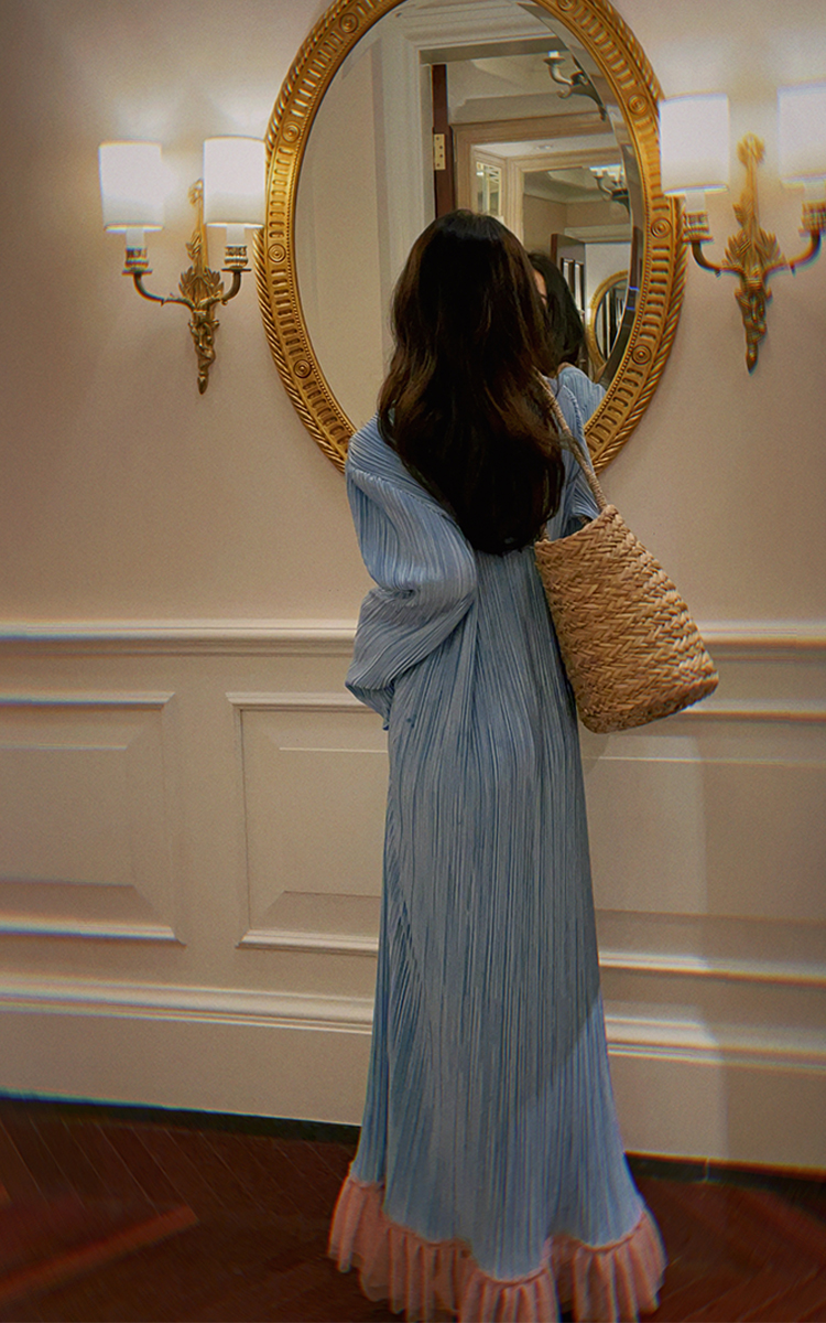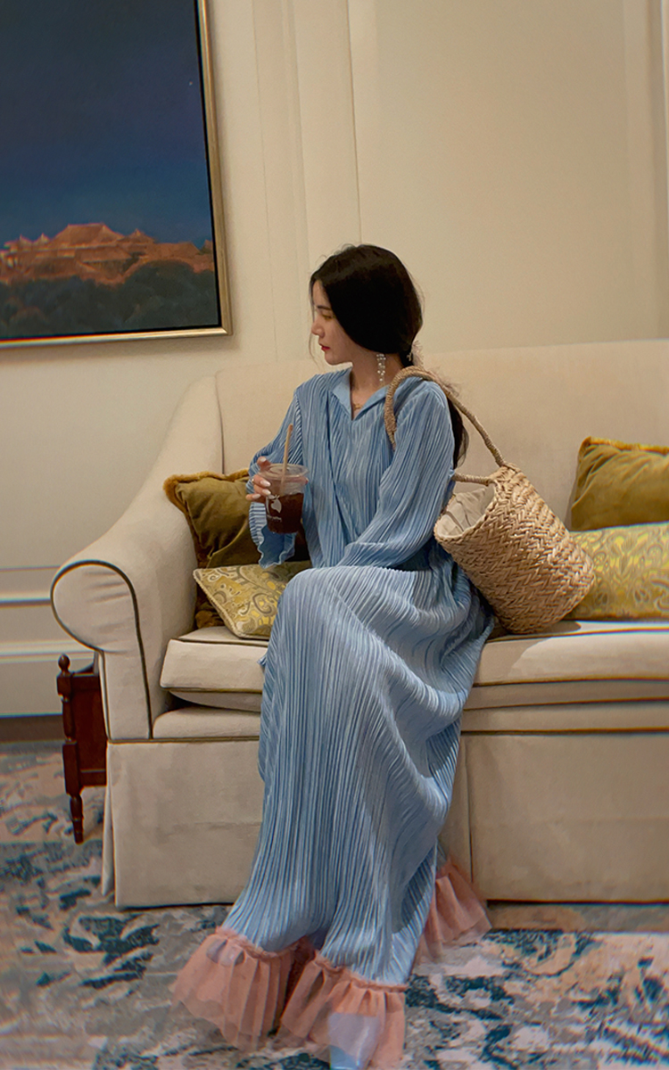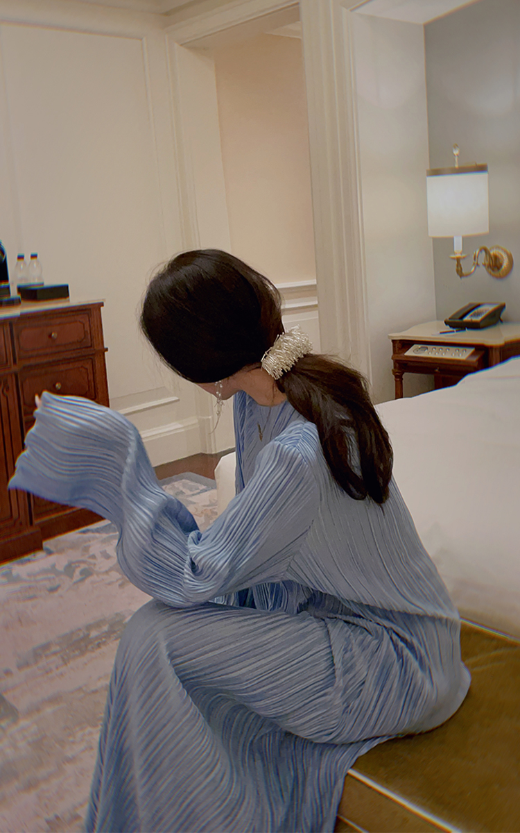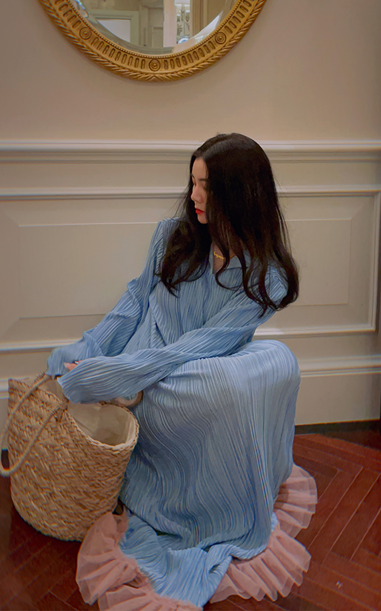 yanyan慵懶設計感百褶遮肉顯瘦顯高舒適洋裝寬鬆簡約三宅褶長裙