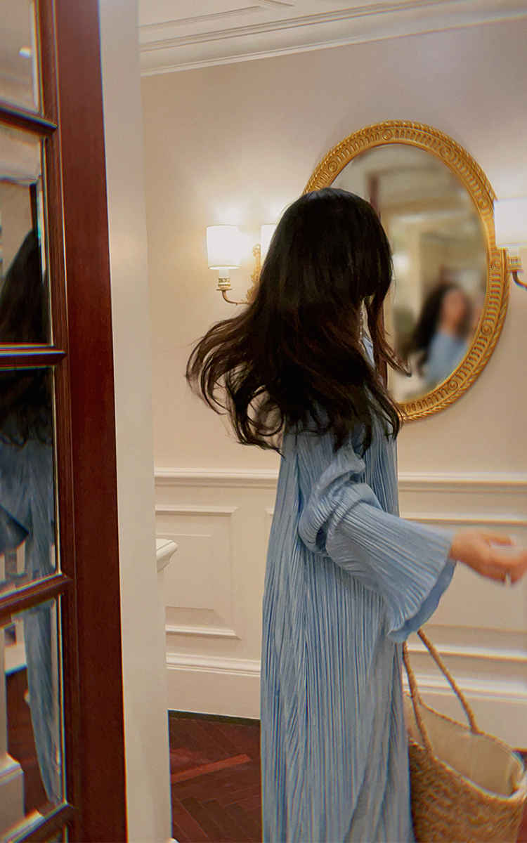 整体版型宽松慵懒 遮肉肉 在走动起来 隐约见曲线