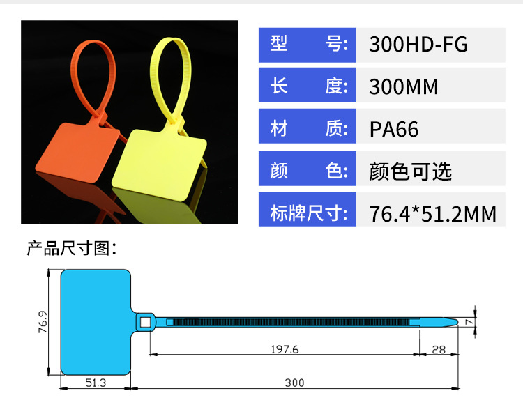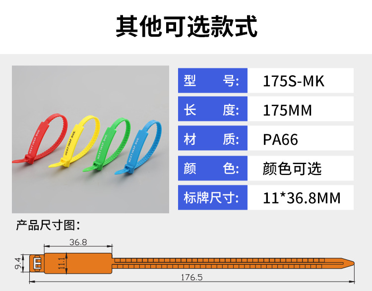 扎带 标牌绑扎带 可印字 200S-MK防拆标识 黄橙绿白黑 标牌扎带