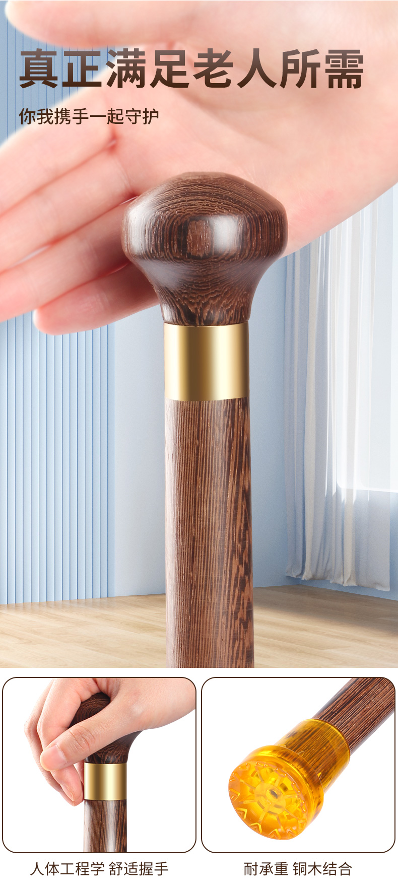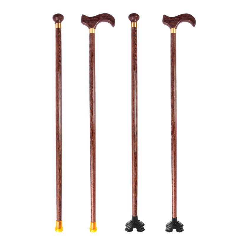 老人柺杖四腳防滑輕便柺棍老年人杖拐木頭拐扙雞翅木手杖實木捌杖