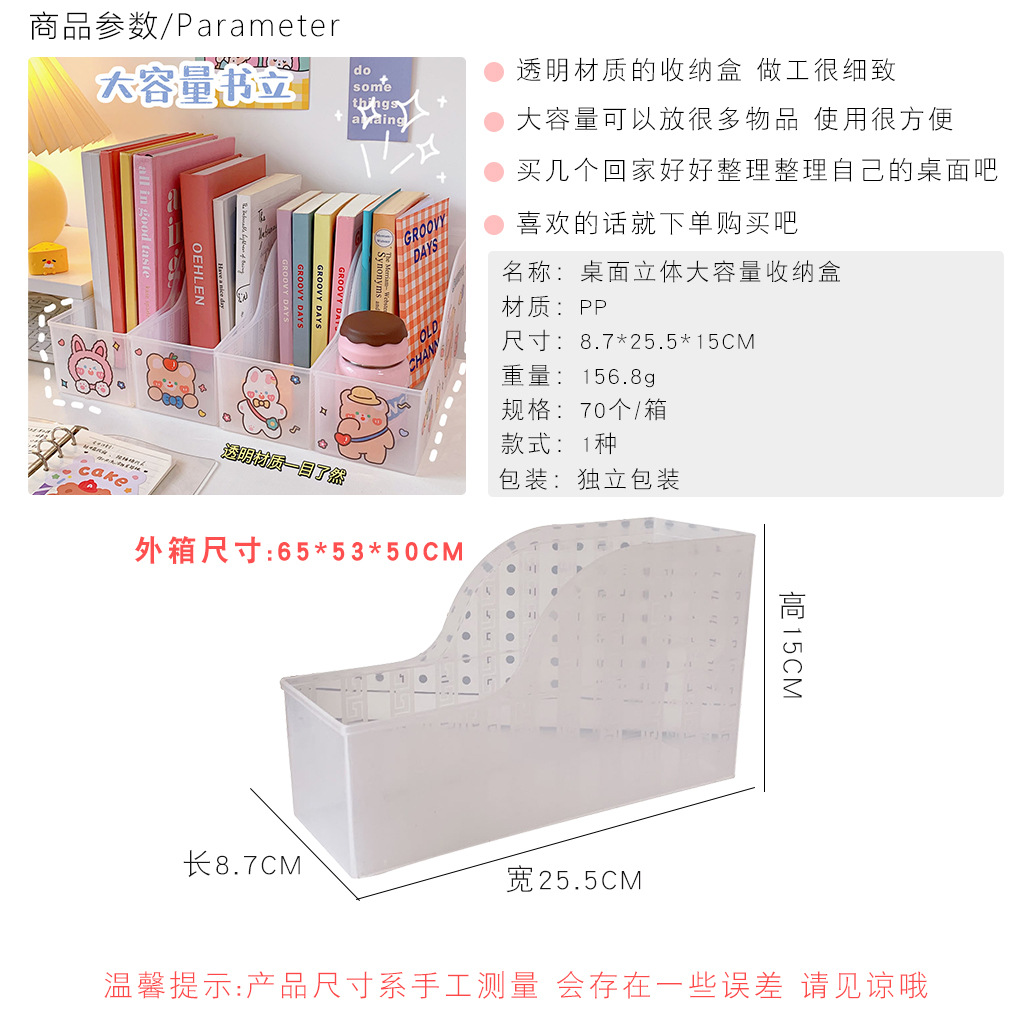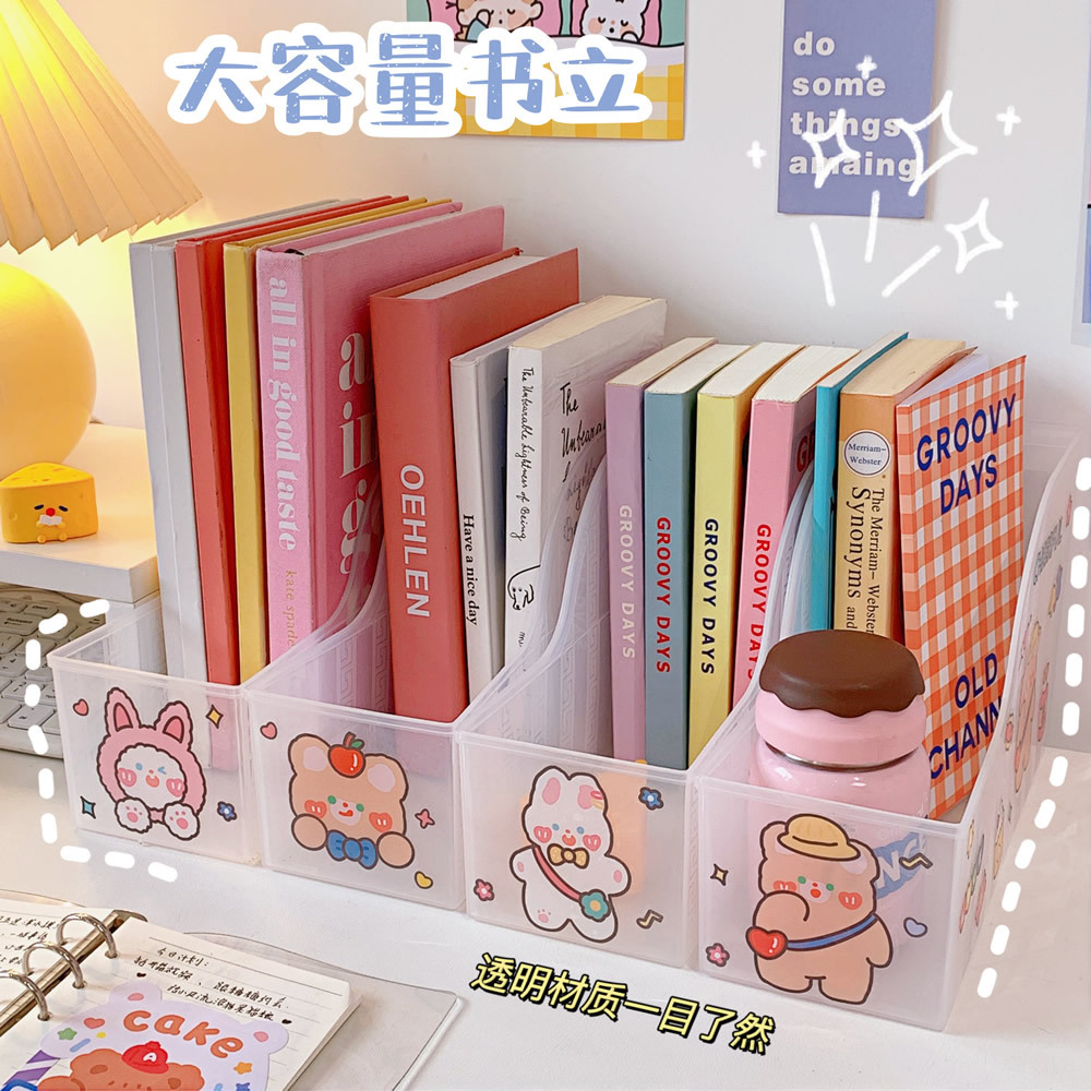透明ins书立网红大容量学生桌面书本书架多功能化妆品收纳盒置物