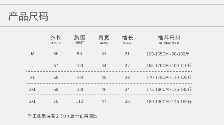 尺碼 M,L,XL,2XL,3XL,尺碼偏小,建議根據推薦尺碼下單