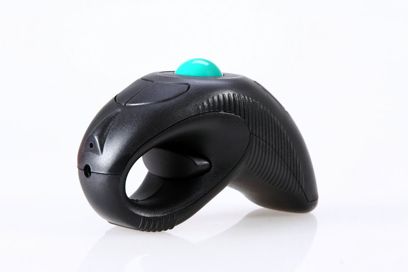 手持使用时,将鼠标握于手中,拇指自然放在滚球上,食指及中指放于左键及右键上,拇指滚 动球体,鼠标准确移动,如需翻页则拇指拨动拨轮,左右键同普通鼠标。