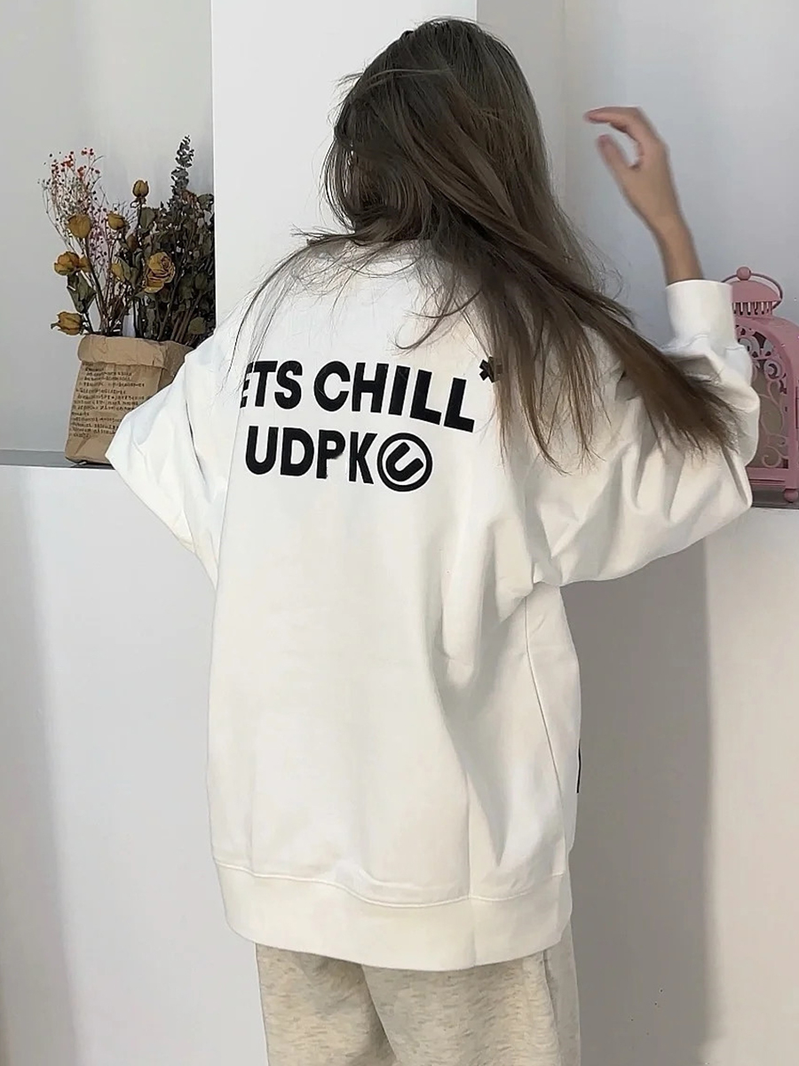 美式復古oversize高街衛衣女秋冬ins潮牌白色上衣小個子無帽外套