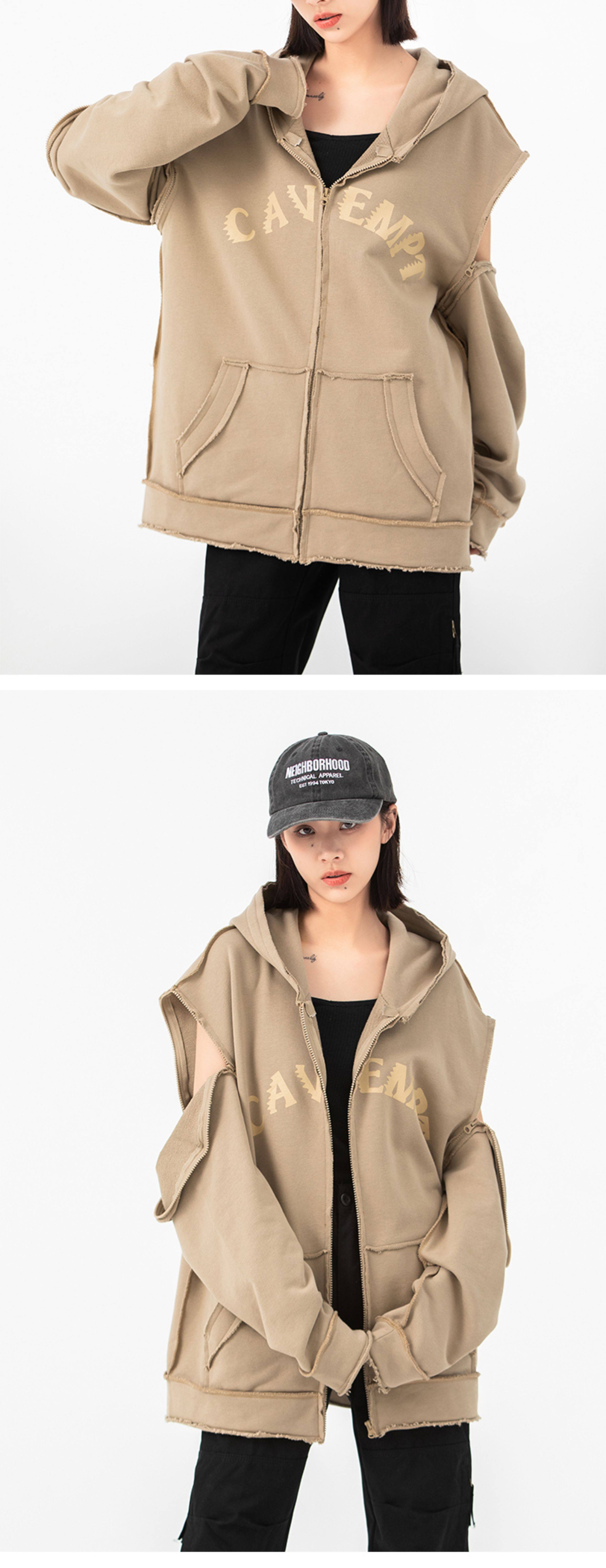 正品CAVEMPT可拆卸復古美式拉鍊外套男女水洗做舊連帽開衫衛衣潮