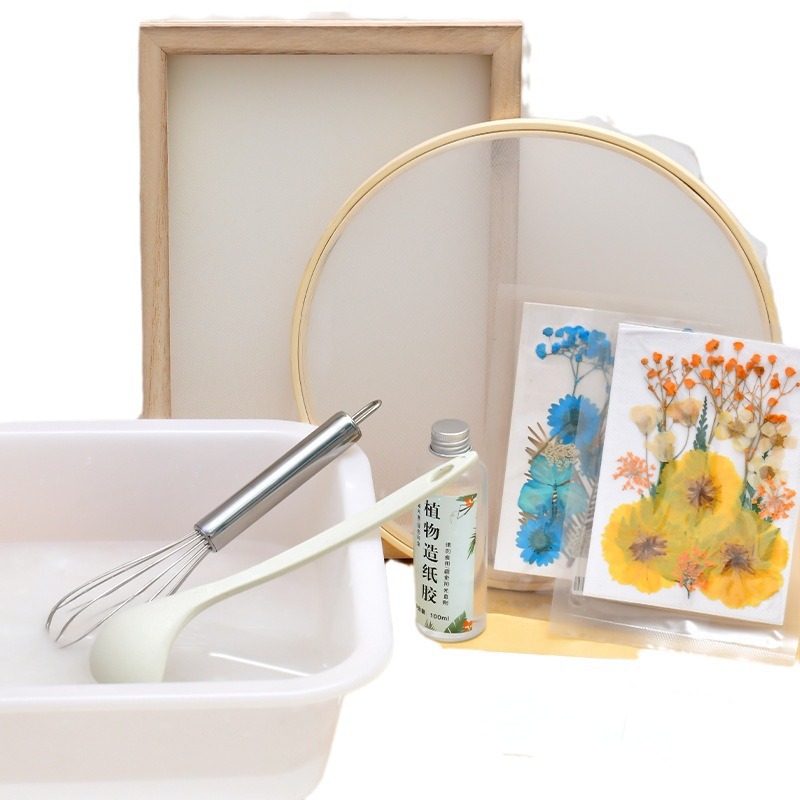 古法造纸术材料包套装 儿童手工diy制作再生花草纸浆木框纱网工具