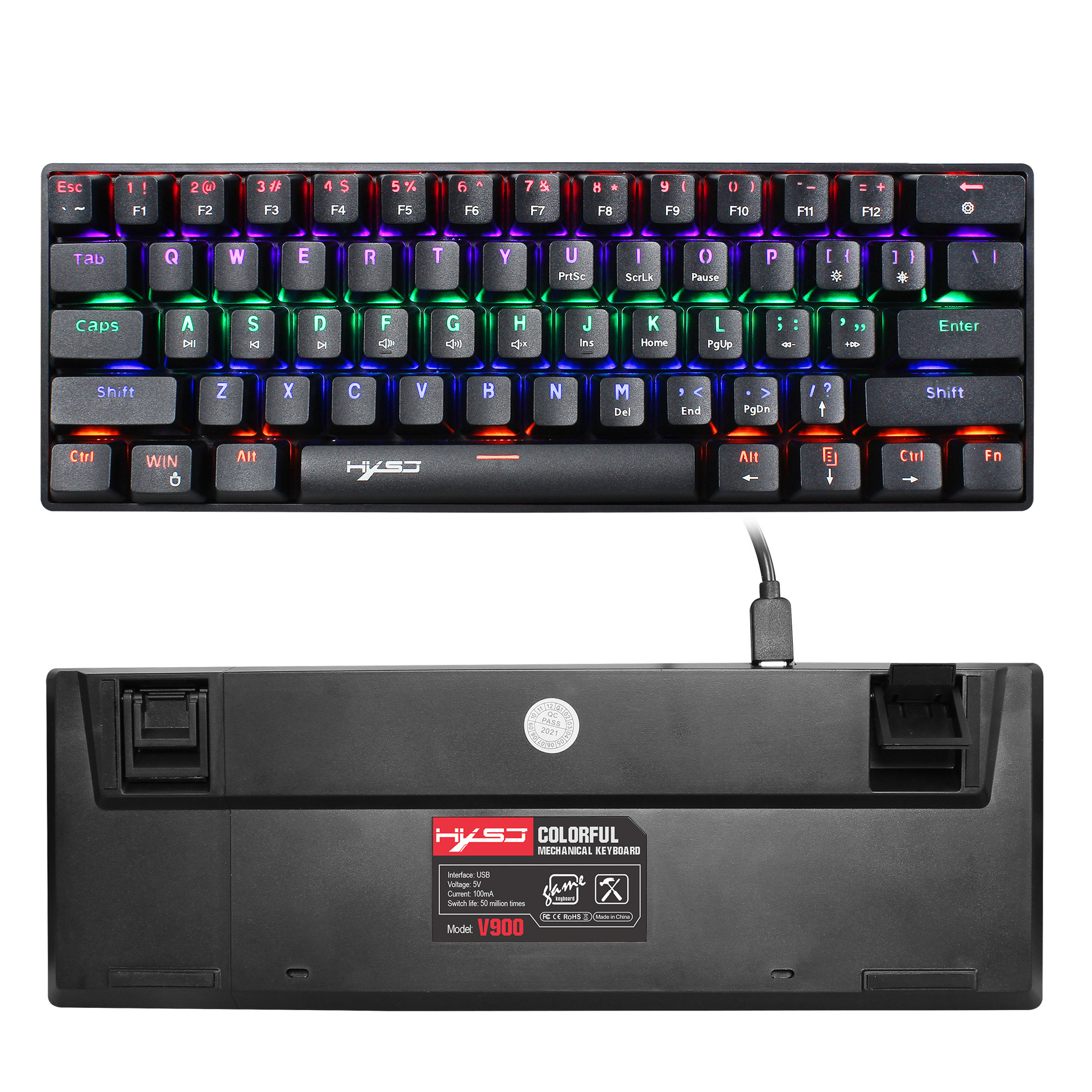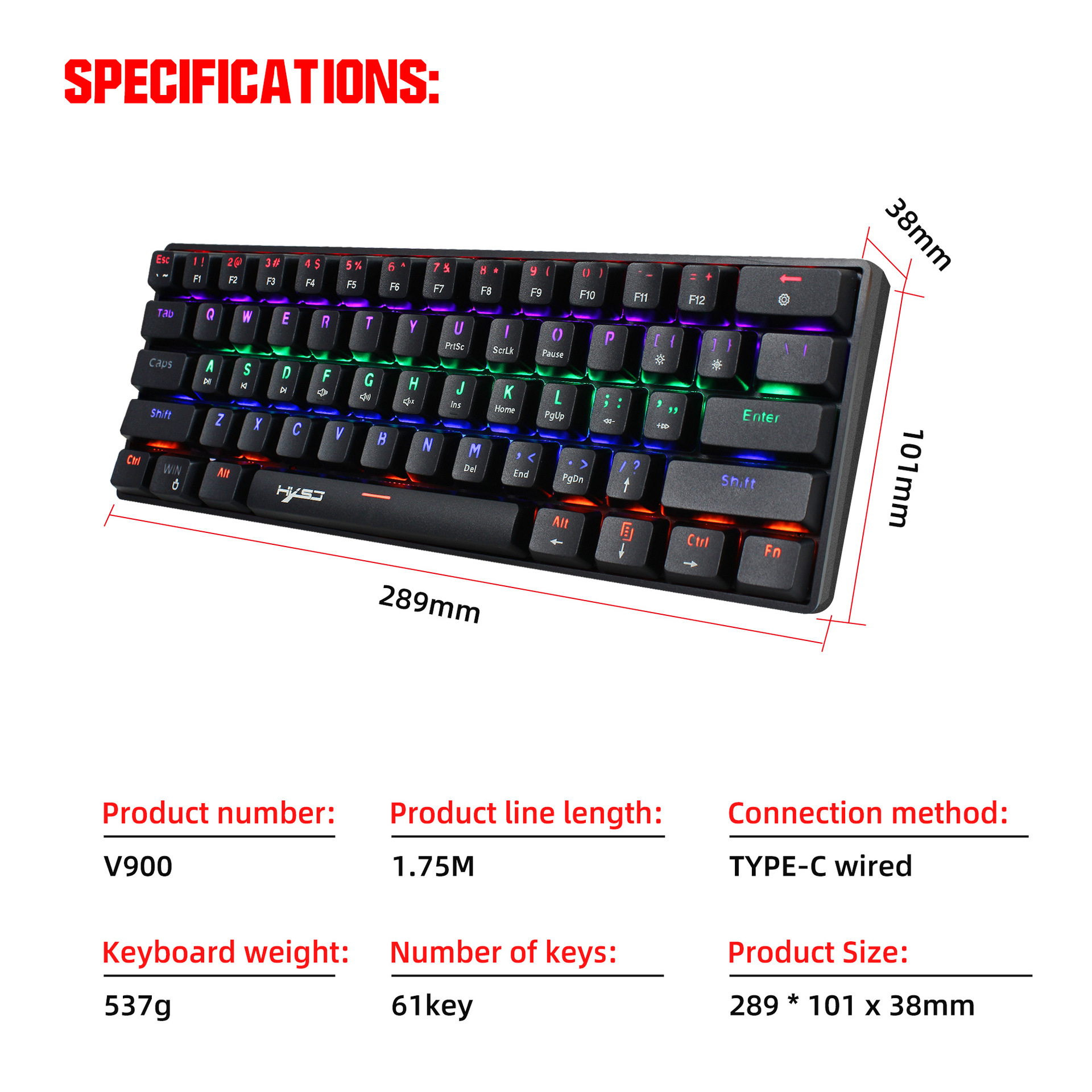 产品规格型号:V900机械键盘61键
